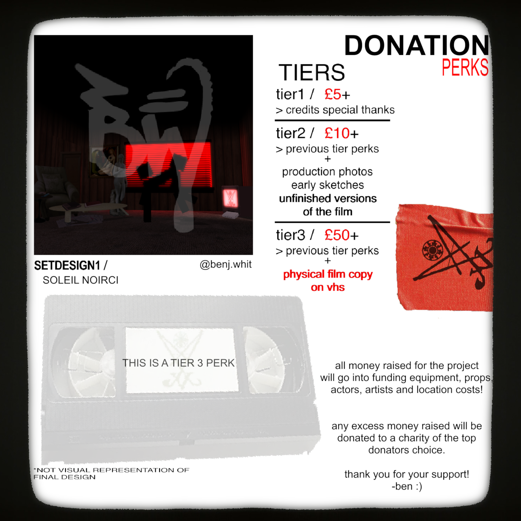 as the only person currently on the project and the one to oversee the main production roles further down the line, i will be directly receiving and transferring every penny raised from this fundraiser into making the best short film possible.