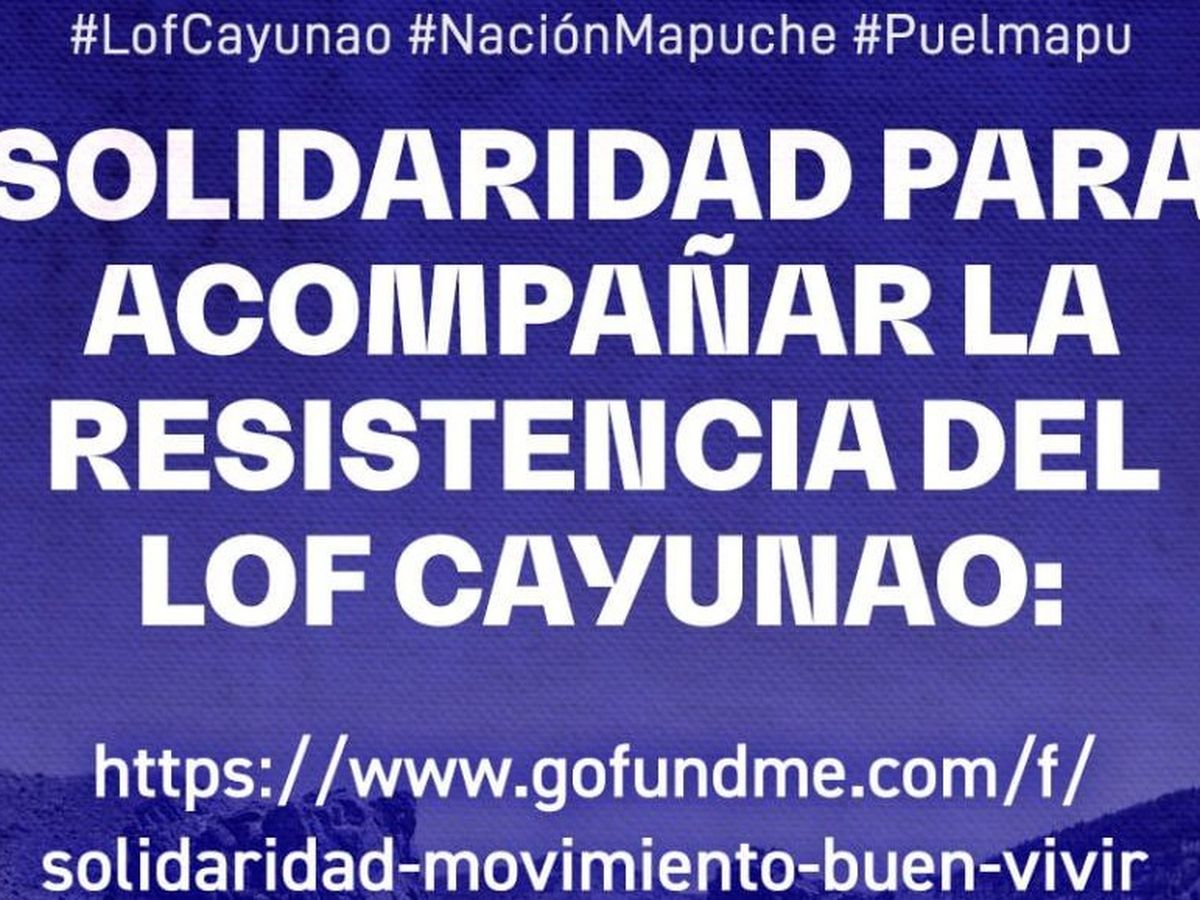 Estendiamo la nostra richiesta di solidarietà a tutti coloro che possono dare il loro contributo di solidarietà per poter pagare l'acquisto di scarpe da alta montagna, cibo, attrezzi, una batteria solare, trasporto, carburante e altre spese che si presenteranno nella veranada di Lof Cayunao nei prossimi giorni.