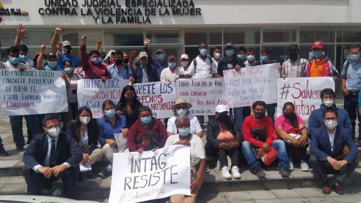 Das in der ecuadorianischen Verfassung verankerte Recht zur Umweltkonsultation sowie die in der Verfassung verankerten Rechte der Natur wurden und werden in Intag immer wieder missachtet. Unterstützt von mehreren Menschenrechts- und Naturschutzorganisationen verklagten Anfang des Jahres die betroffenen Gemeinden Intags die zuständigen Ministerien und ein Bergbauunternehmen (Empresa Minera Exploraciones Mineras Andinas del Ecuador S.A.), welches eine Tochtergesellschaft der staatlichen Bergbaufirma CODELCO aus Chile ist.