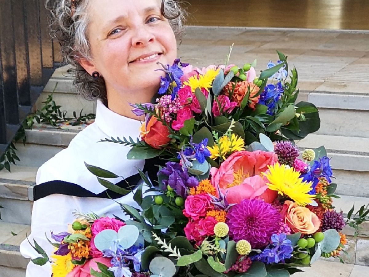 Ps. The photo was taken at Cassie and Chris's fab wedding at the Mansion House in Calderstones Park in June. While the drinks reception was going on, the GAWJ bouquets were kept out of the way on the steps and I couldn't resist grabbing a few of them for a colourful photo!!