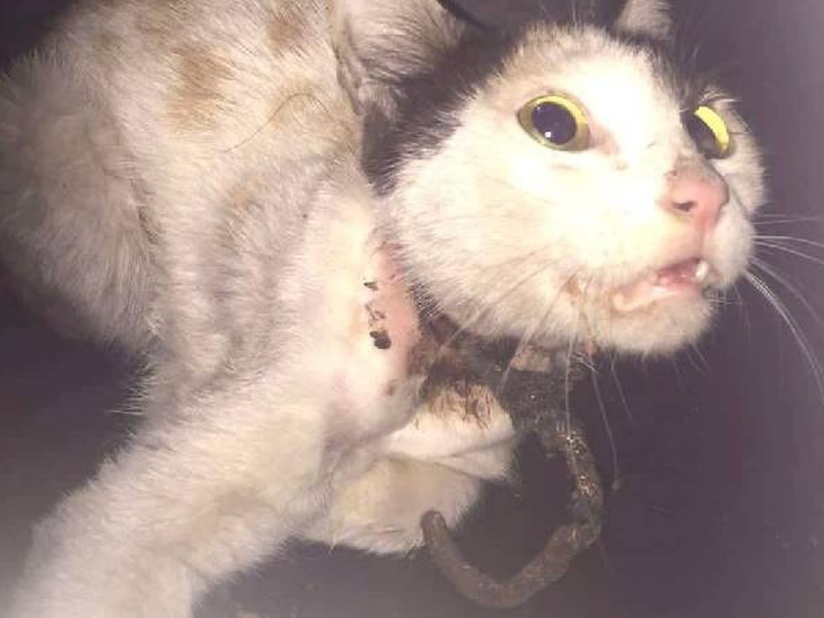 She will have been in horrific pain for some time. Some evil human beings will have done this to her and as she has grown, the rope has cut into her skin. Words fail to express how I feel about anyone who could do this to an innocent defenceless cat!
