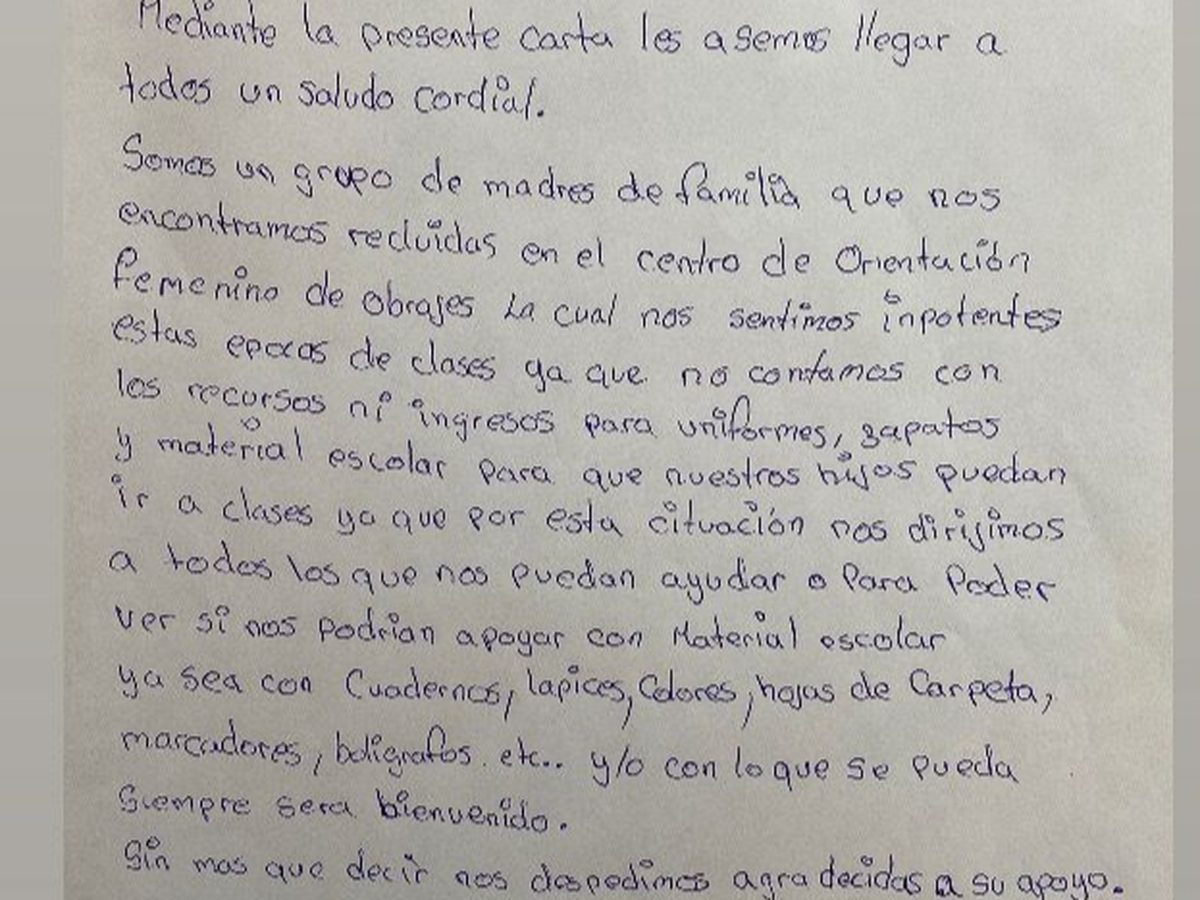 All’interno del carcere alcune donne lavorano in differenti laboratori socio produttivi, producendo oggetti che poi vengono venduti all’esterno. Tuttavia, quello che guadagnano non è sufficiente per coprire le spese scolastiche dei loro figli: quaderni, zaini, penne, colori, uniformi. Molte di loro, inoltre, non hanno una rete familiare o economica che possa sostenerle.