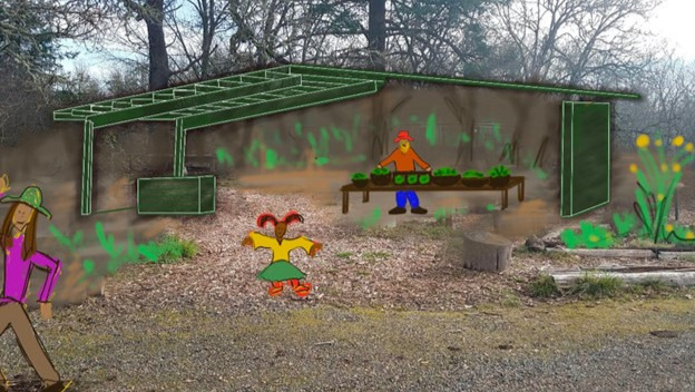 The more permanent shelter will provide a home for the growing community of new artists, first-time farmers, non-profits, youth projects and more. A year-round shelter with water and power allows for expanded classes, workshops and gatherings. Due to this being an area open to the public, county building permits are required including submitting an engineered building plan. To allow for an open and flexible floor plan, a pole building with steel trusses is required. The county had already approved a farmstand building on the private property owned by Flicker & Fir and building designs have been approved!!
