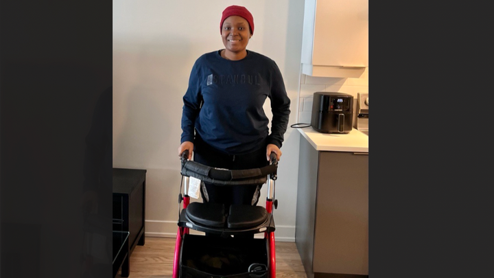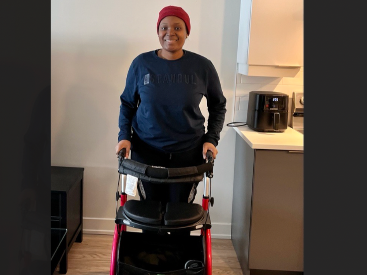 Après des mois d'hospitalisation et une longue période de réhabilitation et de physiothérapie, Sharon a retrouvé une partie de sa mobilité. Elle peut désormais se déplacer avec moins de difficulté et pourra bientôt passer à l’utilisation d’une canne au lieu d'un déambulateur. C'est une étape importante qui montre à quel point elle est forte et déterminée.