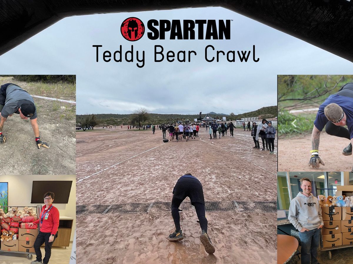 Let's get comfortable being uncomfortable by bear crawling a half mile on the kids' course and raise money to provide teddy bears to the children admitted to the local hospital. AROO AROO AROO.