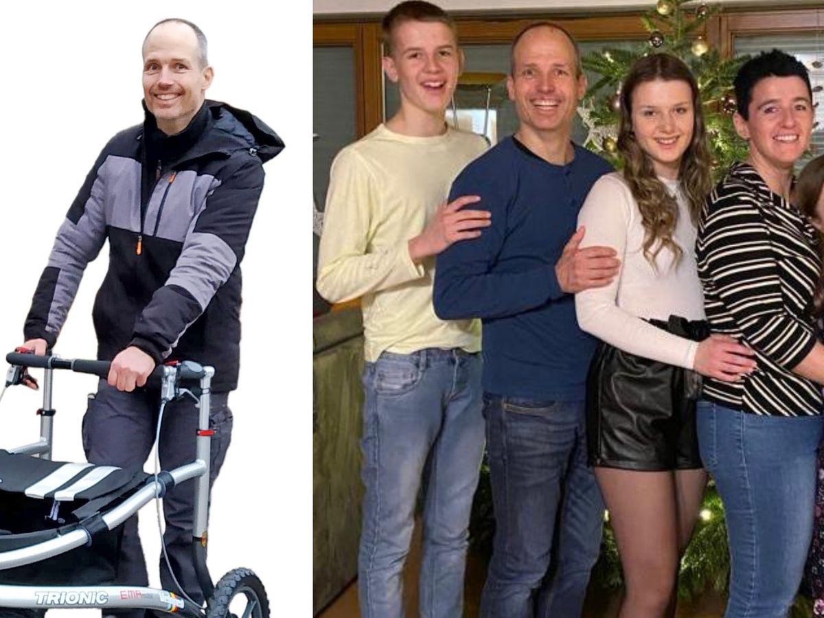 Steffen ist mittlerweile, nur ein Jahr später nach den ersten Symptomen, im Alltag auf Rollator und Rollstuhl angewiesen und benötigt bei fast allen seinen Alltagsaktivitäten die Unterstützung seiner Familie.