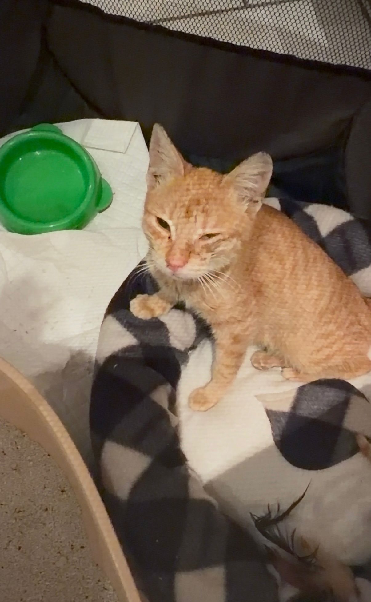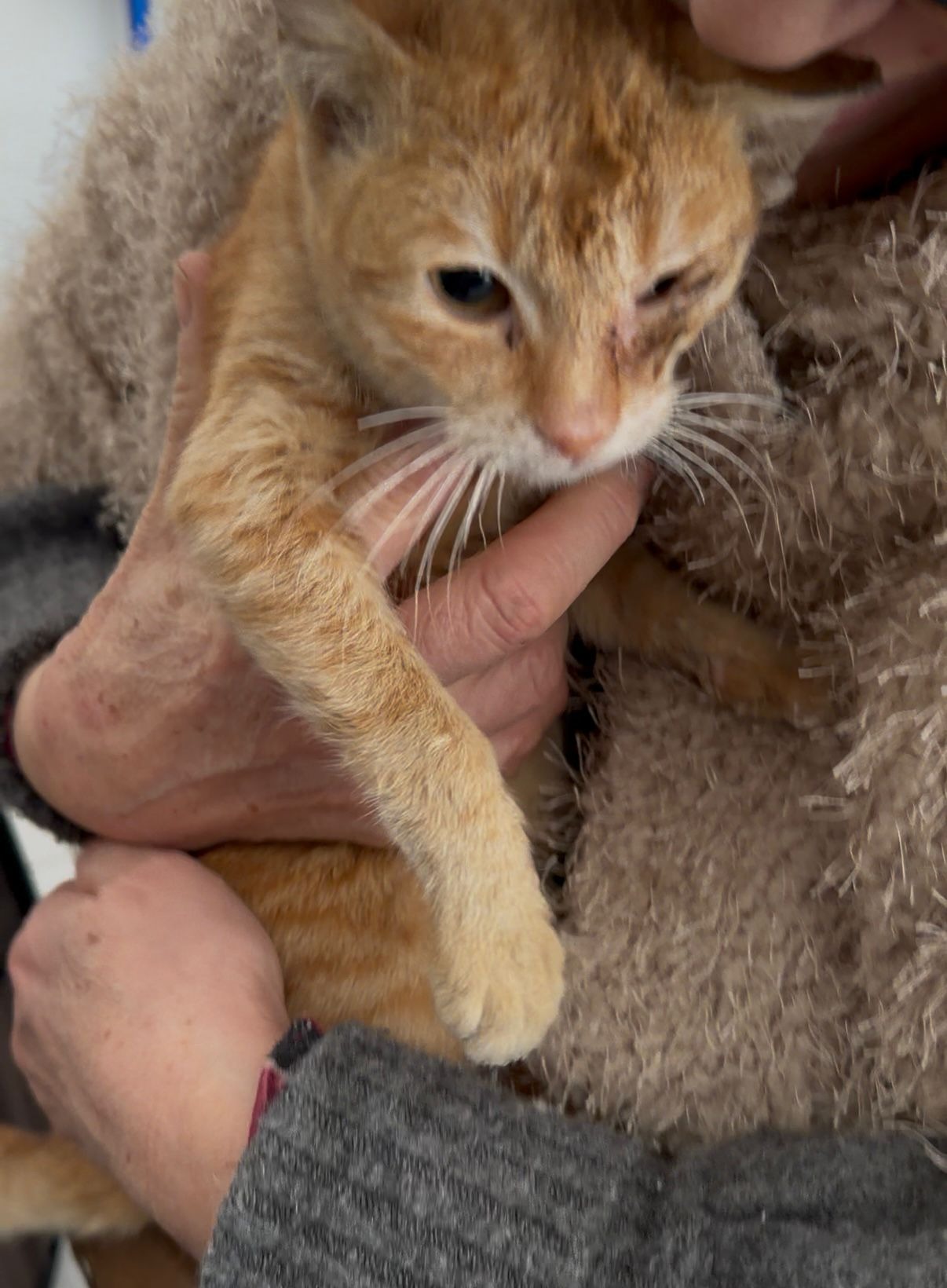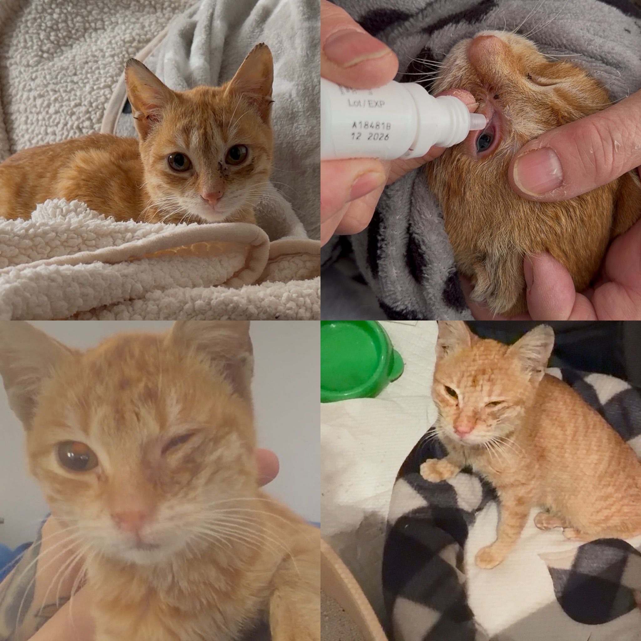 Fibi hatte ein verletztes Auge und Katzenschnupfen.