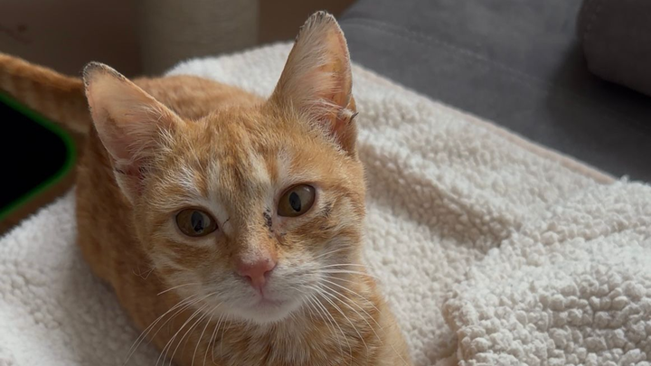 Fibi leidet noch immer an Katzenschnupfen und benötigt weiterhin tierärztliche Behandlung.