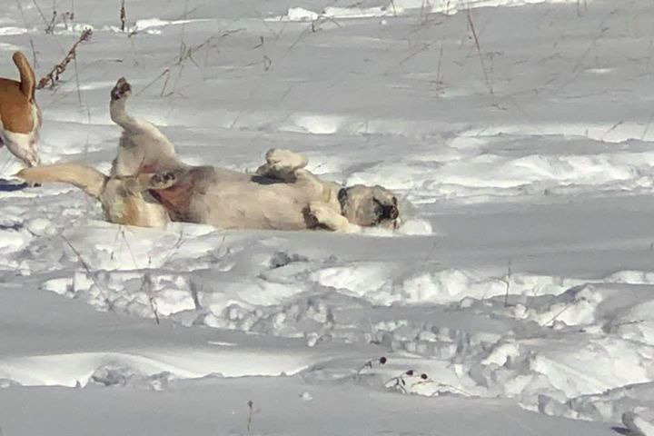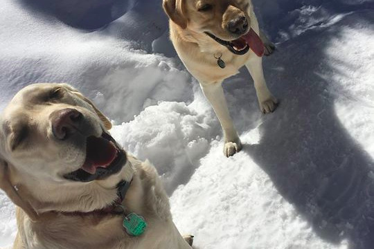 Here is a picture of our beloved, 8-year-old yellow lab, Shaggy, joyously rolling in the snow a week ago. Then two days ago, after an important afternoon of keeping our backyard safe from squirrels, we found Shaggy on our living room floor, unable to move her legs. She didn't seem to be in too much pain. She just couldn't move anything from her neck, down -- other than her tail, which she kept wagging as we pet her and maybe spoiled her with a bit too much rotisserie chicken.