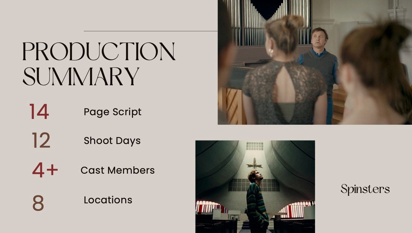 Spinsters is the culmination of my attempt to represent musical form in a visual medium. It tells the story of four, unmarried, childless people in their 30s navigating the pressures of society by friends, family, work, and themselves. They all belong to the same church choir and and find fulfillment through their complex relationships with religion and music.