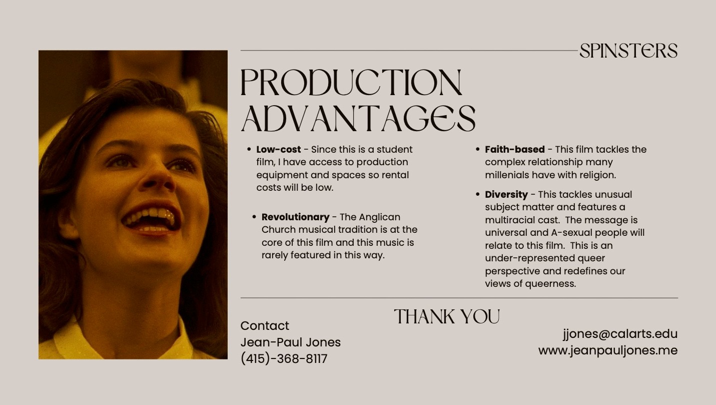 Thanks for stopping by. My name is Jean-Paul Jones and I am raising funds to produce my thesis film Spinsters and complete my degree requirements in the Film Directing Program at CalArts.