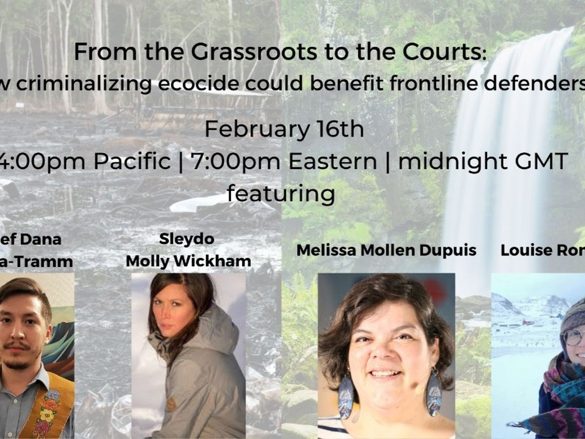 The second webinar on February 16th will feature stories from the frontlines, centered on how criminalizing ecocide could benefit Indigenous communities and land defenders. Sign up here: https://us02web.zoom.us/webinar/register/WN_Xhq4quVVQqaS9_uj3iwyIw