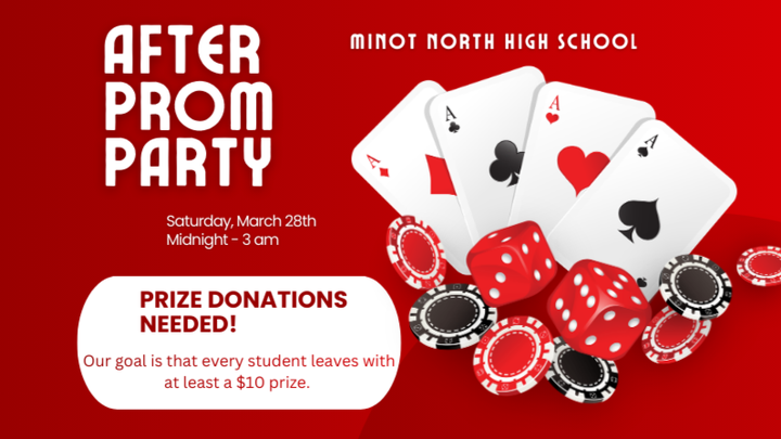 Minot North After Prom Party is a parent-led activity that will be held after prom on Saturday, March 28th from midnight to 3am.