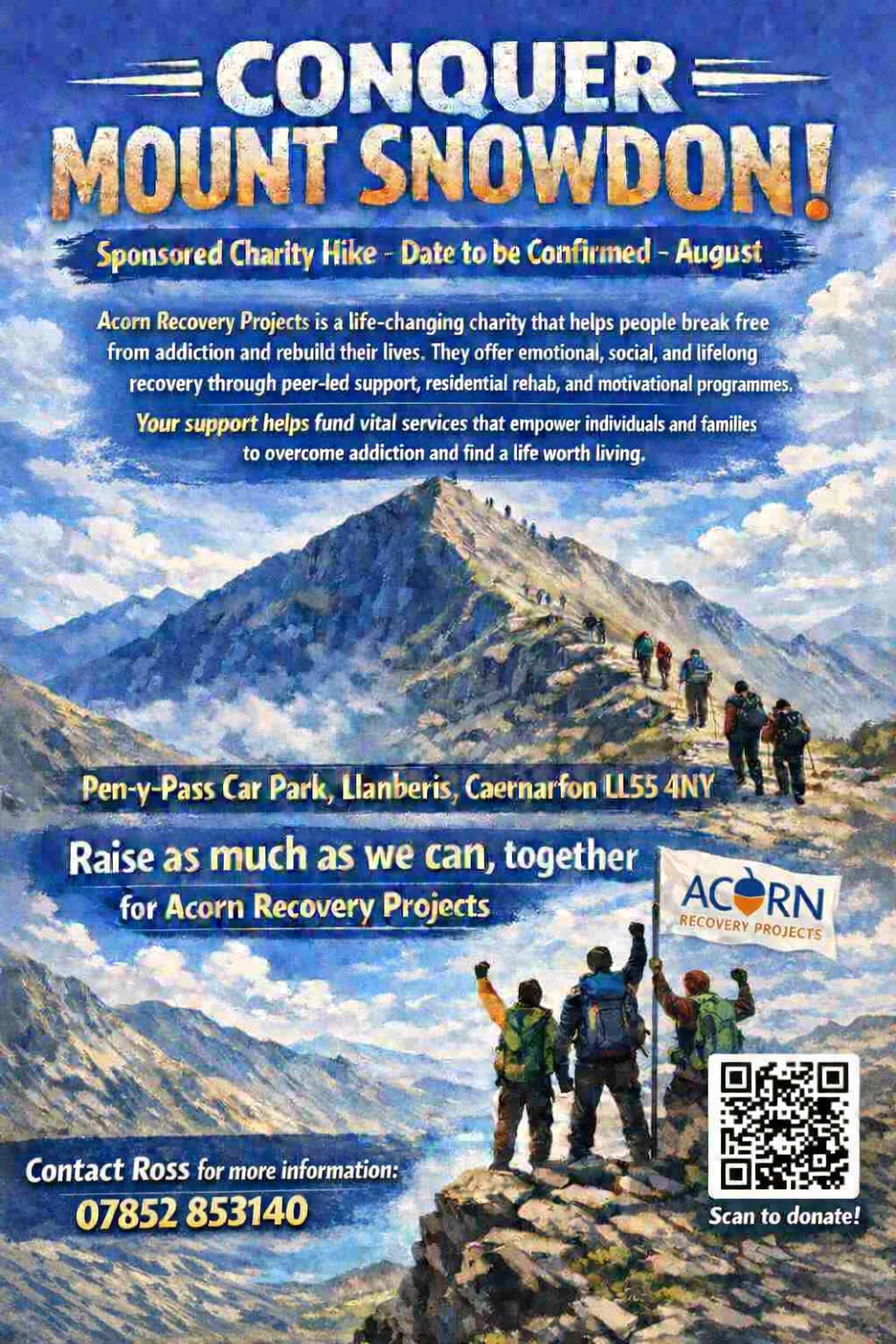 I, alongside other's in the recovery community and those currently in treatment, will be taking on a sponsored hike up Mount Snowdon, the highest peak in Wales. This climb represents more than a physical challenge — it symbolises the journey of recovery itself:
