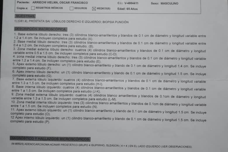 En octubre 14 del año pasado después de presentar varias molestias los médicos confirmaron la presencia de un tumor en mi próstata (Adenocarcinoma Acinar Prostatico Grupo 4).