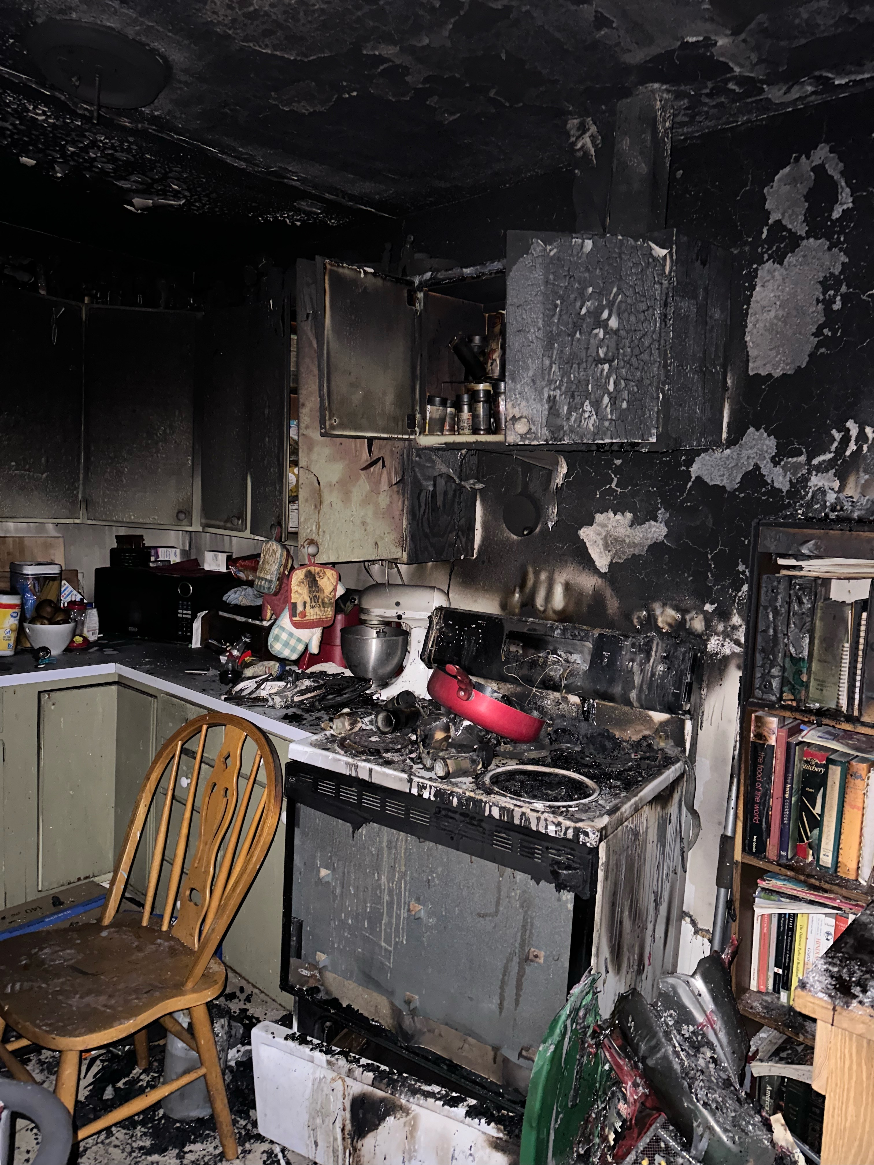 Our kitchen is a complete loss. All of our furniture is a complete loss. A very large portion of our books, Star Wars collectables, Pez, my Lego Home Alone House, Lego Harry Potter toys and music memorabilia are also gone. The Howard Hall of fame, which contained the best of our pictures and achievements no longer exists.