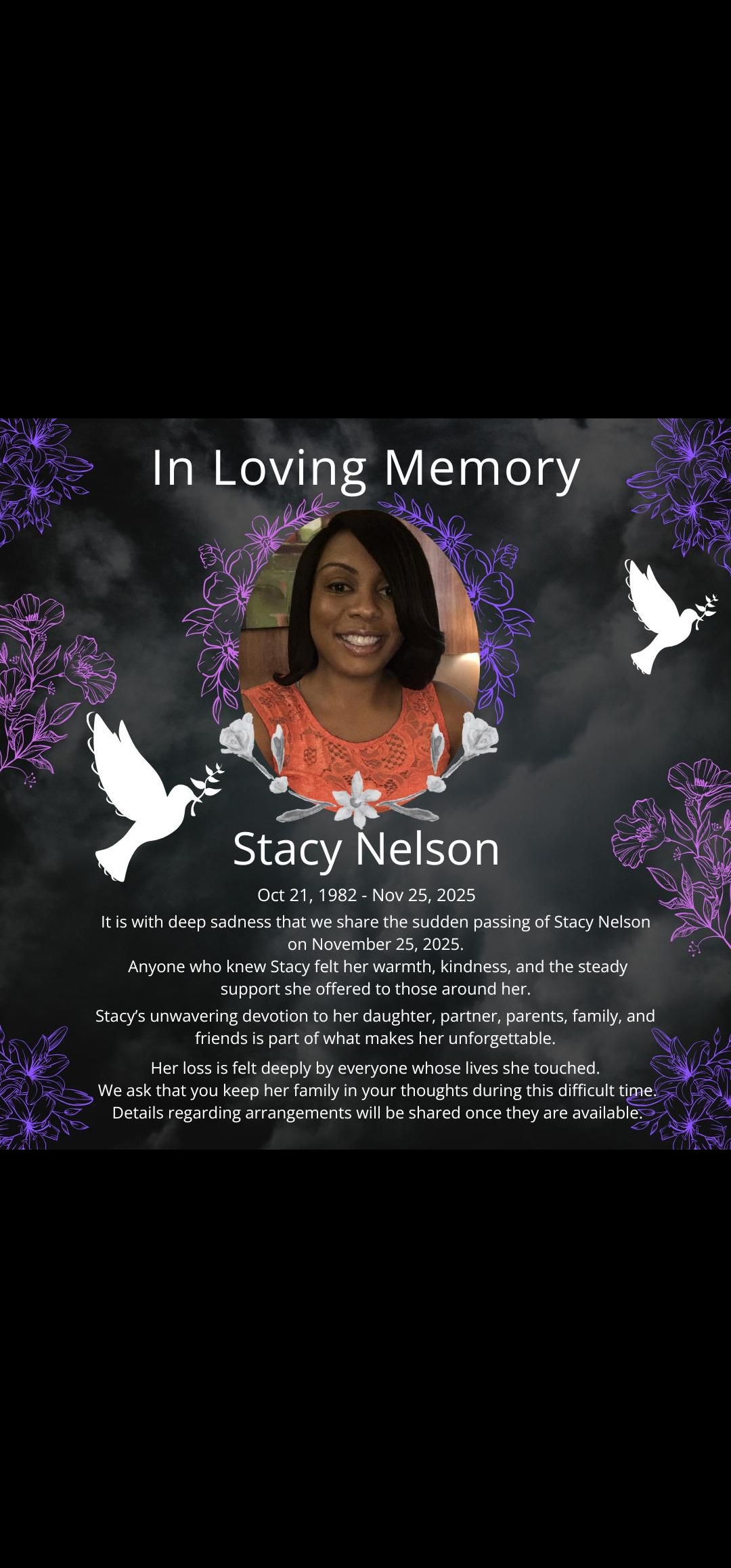 Thank you for your love, support, and prayers for Stacy’s family.