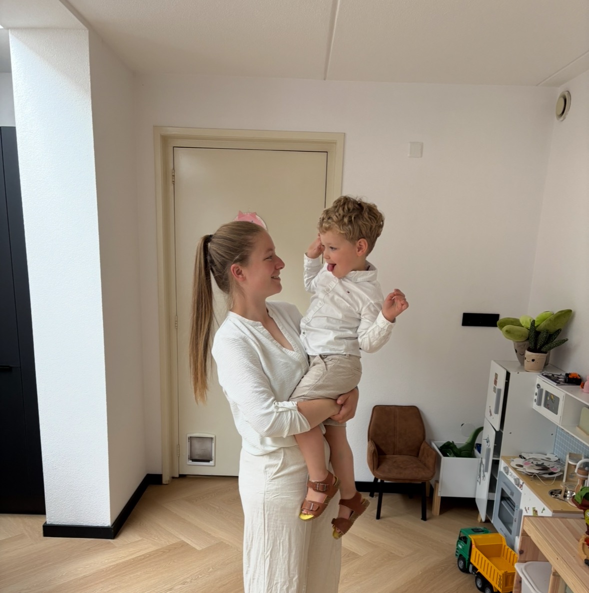 My name is Melissa (28). I live with my husband Dion (32), our children Riv (3) and Luca (1), and our dog Baloe.