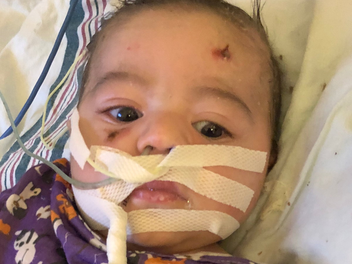 After being roomed with a child that ultimately tested positive for rhinovirus, and sharing everything with that family for 48 hours, Mason began to show symptoms. I was told over and over that it wasn’t necessary to swab for viruses as Mason had no fever. Yet Miles died, and Mason is where he is with these same symptoms, congestion and no fever. That wasn’t enough. 5 days into his symptoms, Mason began to vomit after his feeds. He tested positive, again, for rhinovirus. He was moved to a private room. 2 days later his stridor worsened and he began pulling in violently at his neck when taking breaths. Overnight, this over working to breathe continued and worsened to chest retractions. He was put back on oxygen, and no matter how much they increased the flow, his contractions not only persisted, they got worse. I asked to be sent back to the ICU and the request was granted. However while waiting for that transfer to happen, my baby, in my arms, began taking one breath for every 5 he should’ve been, and I saw his lips turn the color blue just as I had seen in Miles on 12/23.