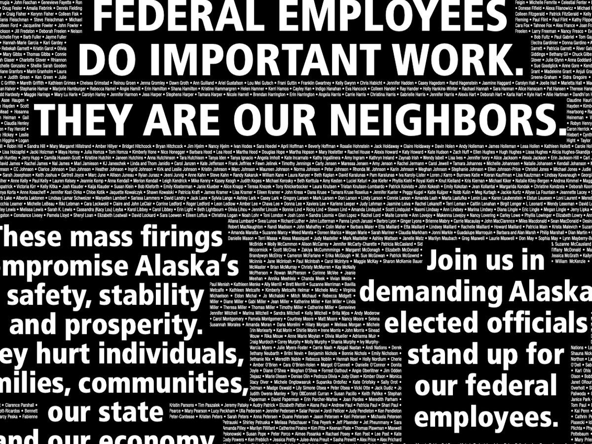 We're placing a full page ad in the March 2 edition of the Anchorage Daily News to show support for Alaska's federal workers, who serve our state and our nation. Donate if you can, and add your name for display even if you can't. Sign up on this google sheet to have your name appear in the ad: https://forms.gle/osn3JBnPYd1qN3Pk8