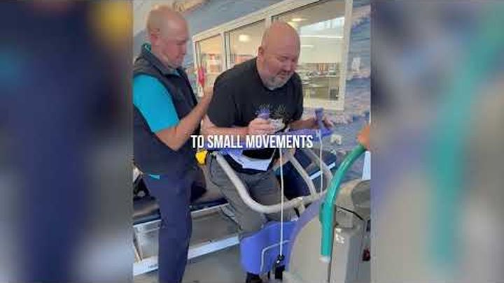 When he was transferred to Mona Vale Rehabilitation on 1 July, Wayne arrived with zero movement in his arms or legs. He needed a hoist just to get out of bed.
