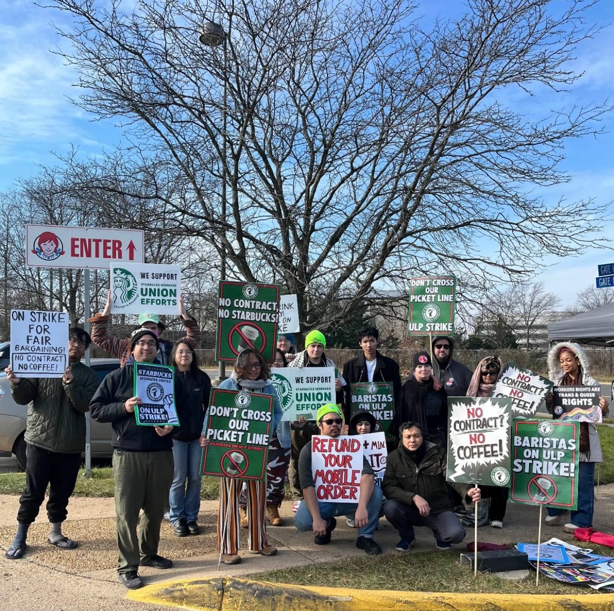 The partners at Gallows and Gatehouse Starbucks have been fighting since 2022 for a fair contract - for a livable wage; for stable schedules that meet the hours threshold for benefits; for affordable healthcare; for an end to workplace violations. Starbucks has stalled in negotiations over a fair contract and continues to union bust and infringe on our rights as workers. We're standing up to say we will not take this without a fight. But we need your support.