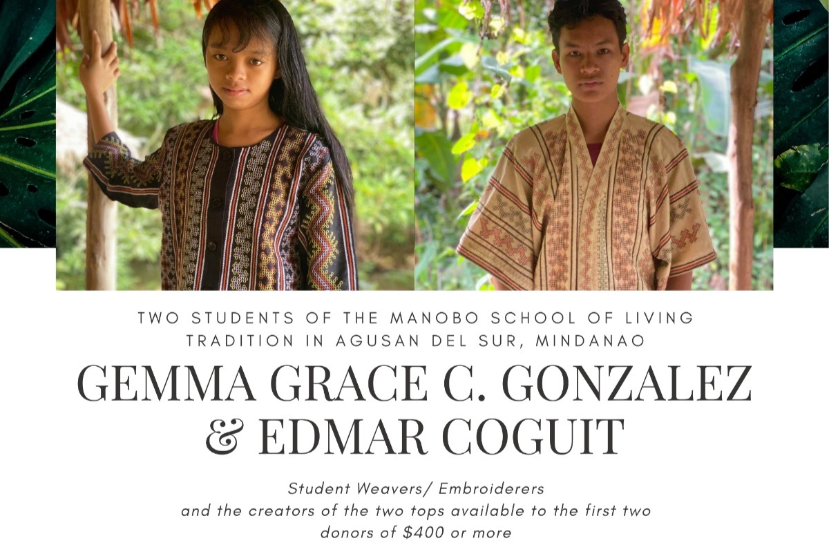 As a show of gratitude for your generous support of the students and teachers who would be directly supported by this campaign, two beautifully embroidered tops will be offered to the first two donors who give $400 or more to the campaign, which would pay for the laptops and living expenses of Agusan-Manobo students. Two of the students and artisans who have created these pieces are GEMMA GRACE C. GONZALEZ and EDMAR COGUIT (pictured below).