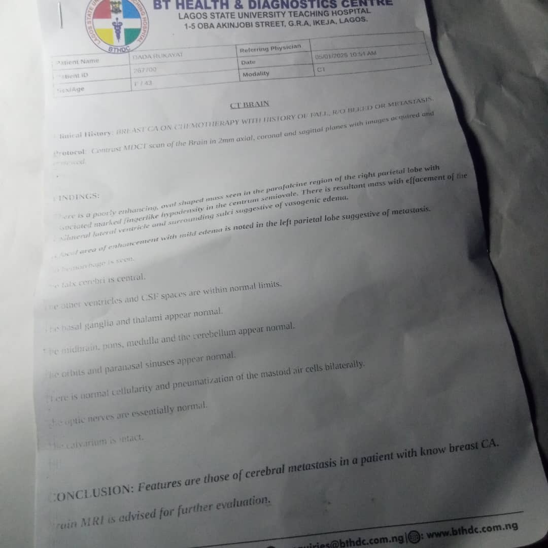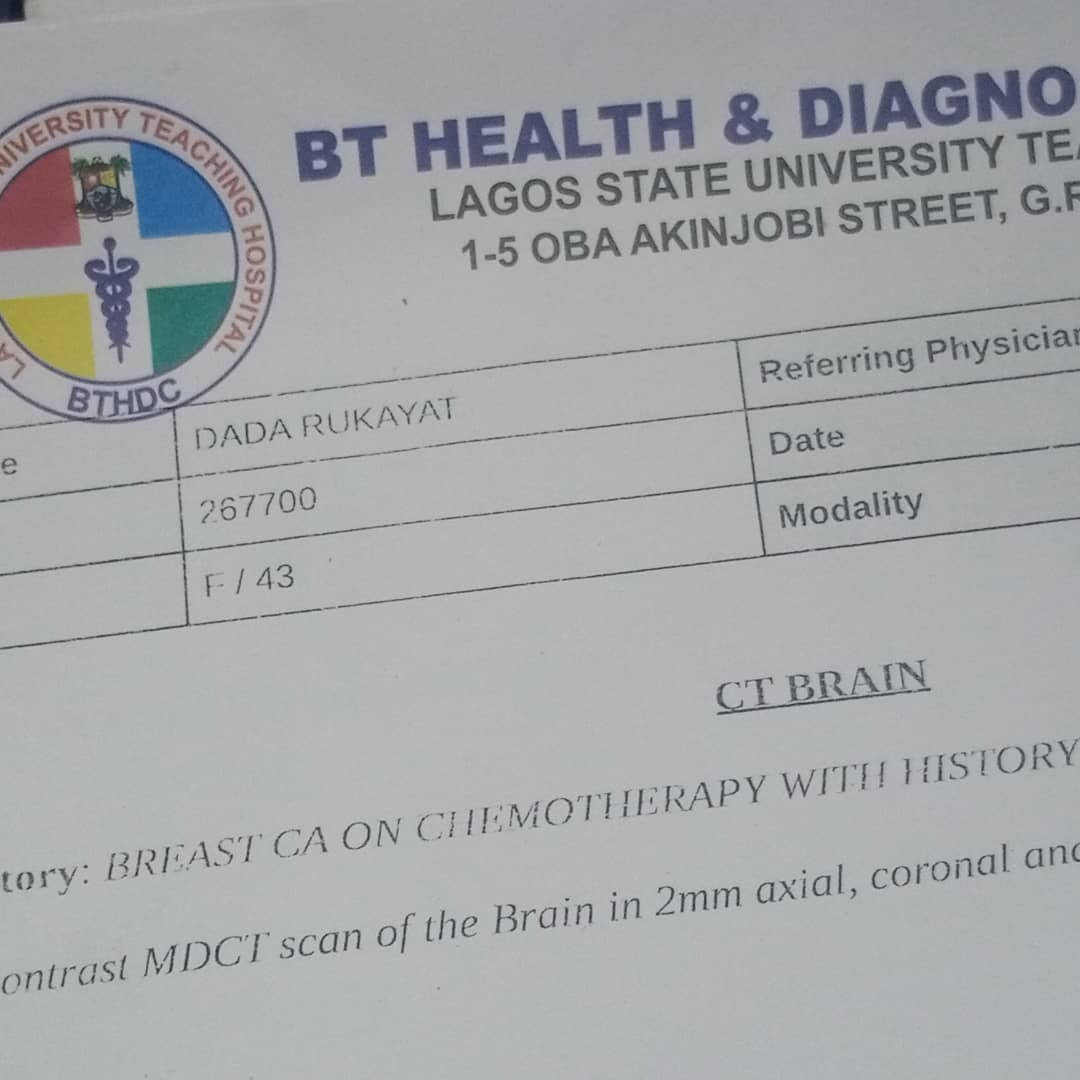 Rukayat Daramola is a mother of two courageously fighting advanced breast cancer. After undergoing chemotherapy and a mastectomy, recent scans have confirmed that the cancer has spread to her lungs and brain, making her condition critical.