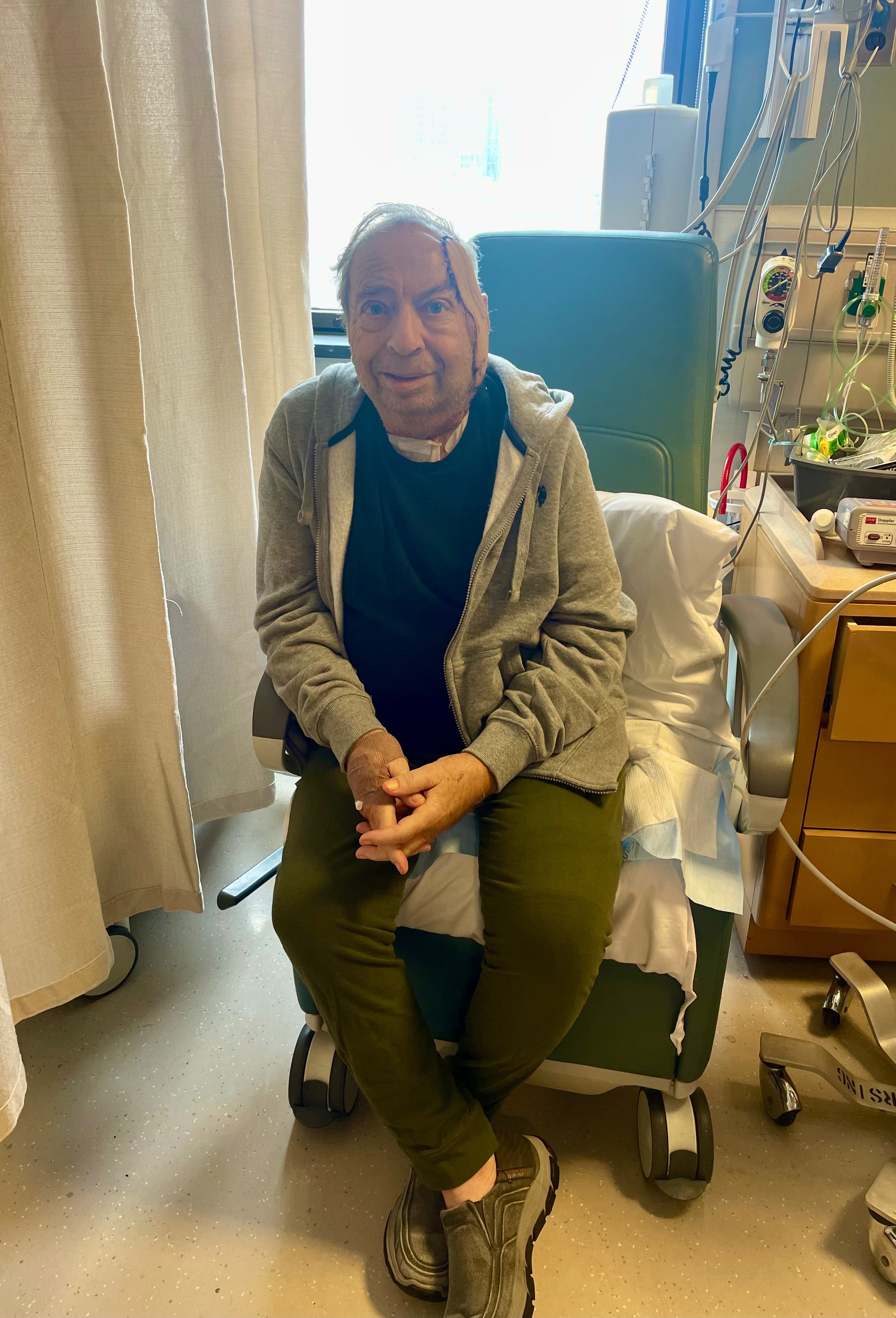 On September 25th, he underwent a massive 12-hour surgery at Memorial Sloan Kettering to remove large cancerous growths from the side of his face and neck, as well as some lymph nodes. The surgery involved extensive reconstruction and a skin graft from his leg.