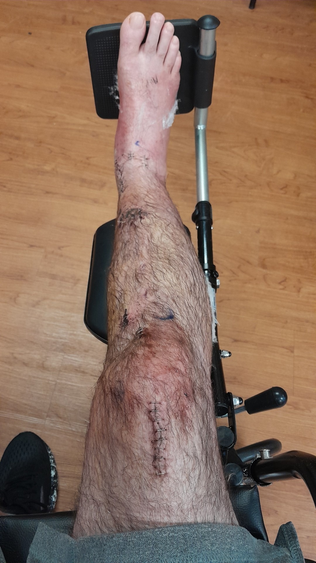 On August 29, 2025, Gregg was at his job at a big box home improvement store when he was seriously injured in a workplace accident. A lumber cart full of over 2000 lbs of lumber shifted, flipping the cart and its contents onto his right leg, crushing the lower leg and shattering the ankle. He was rushed to the Hurley Medical Center Trauma Unit where it was determined that he had an open fracture of the tibia and fibula, as well as a pilon fracture of the ankle. Gregg had external fixation surgery the next day to hold the bones in place to wait for the next operation which, due to other emergencies at the facility, he had to wait over 2 weeks for. At that point, a metal rod was put in through the knee with 3 plates and 15 screws in his leg and ankle. He was then released and in a wheelchair for 3 weeks, in extreme pain and unable to care for himself. While Gregg has a great support system in his fiancé Beth, family and friends, he has been unable to work, his savings are rapidly diminishing, and the amount he is receiving from workman's comp doesn't cover even his basic expenses, which is why we are reaching out for help. While Gregg is on the path to recovery and working his physical therapy, he is scared of what the long term implications will be on his life, the uncertainty of his future, his ability to walk, and to provide for himself and his family.