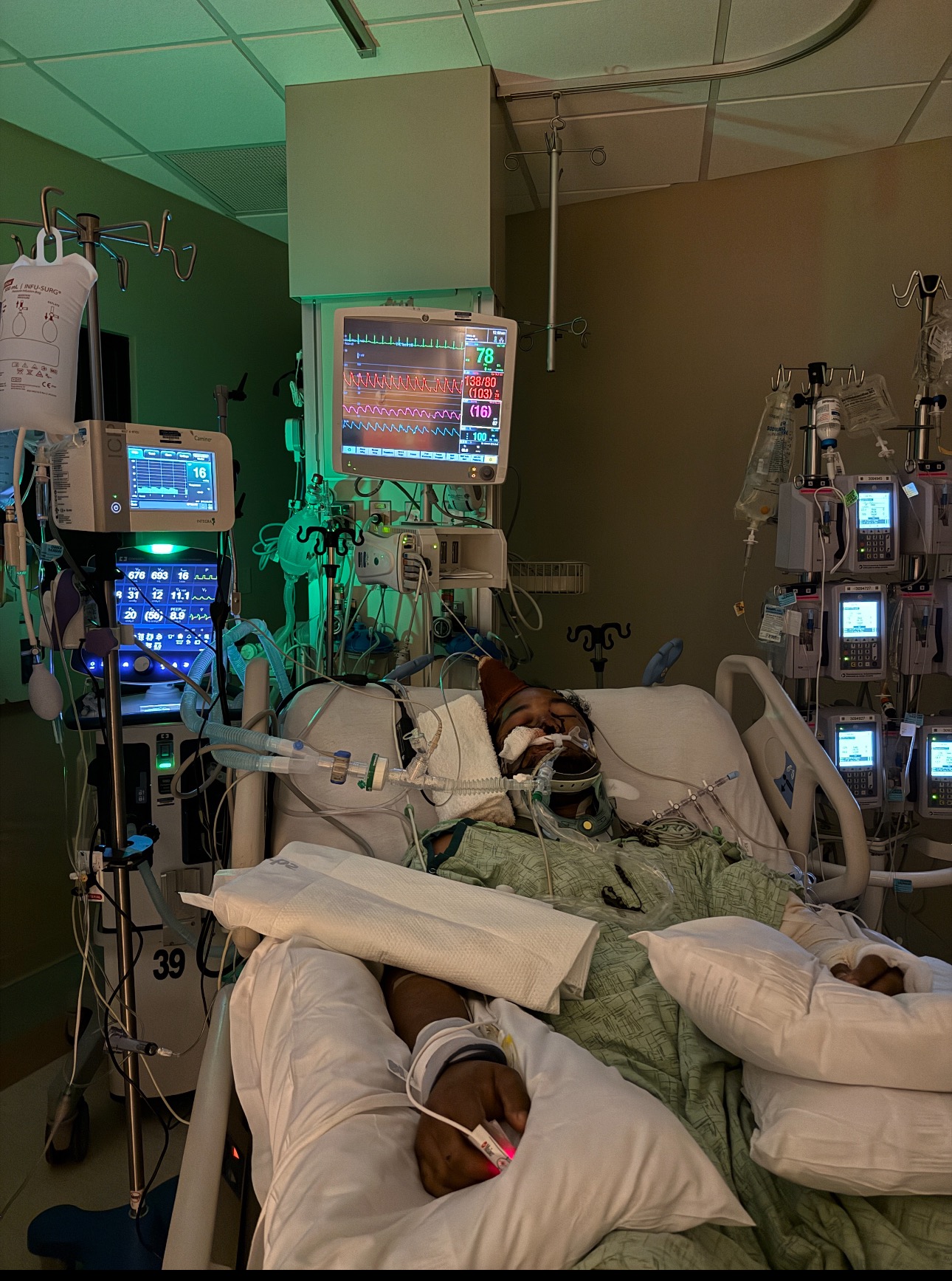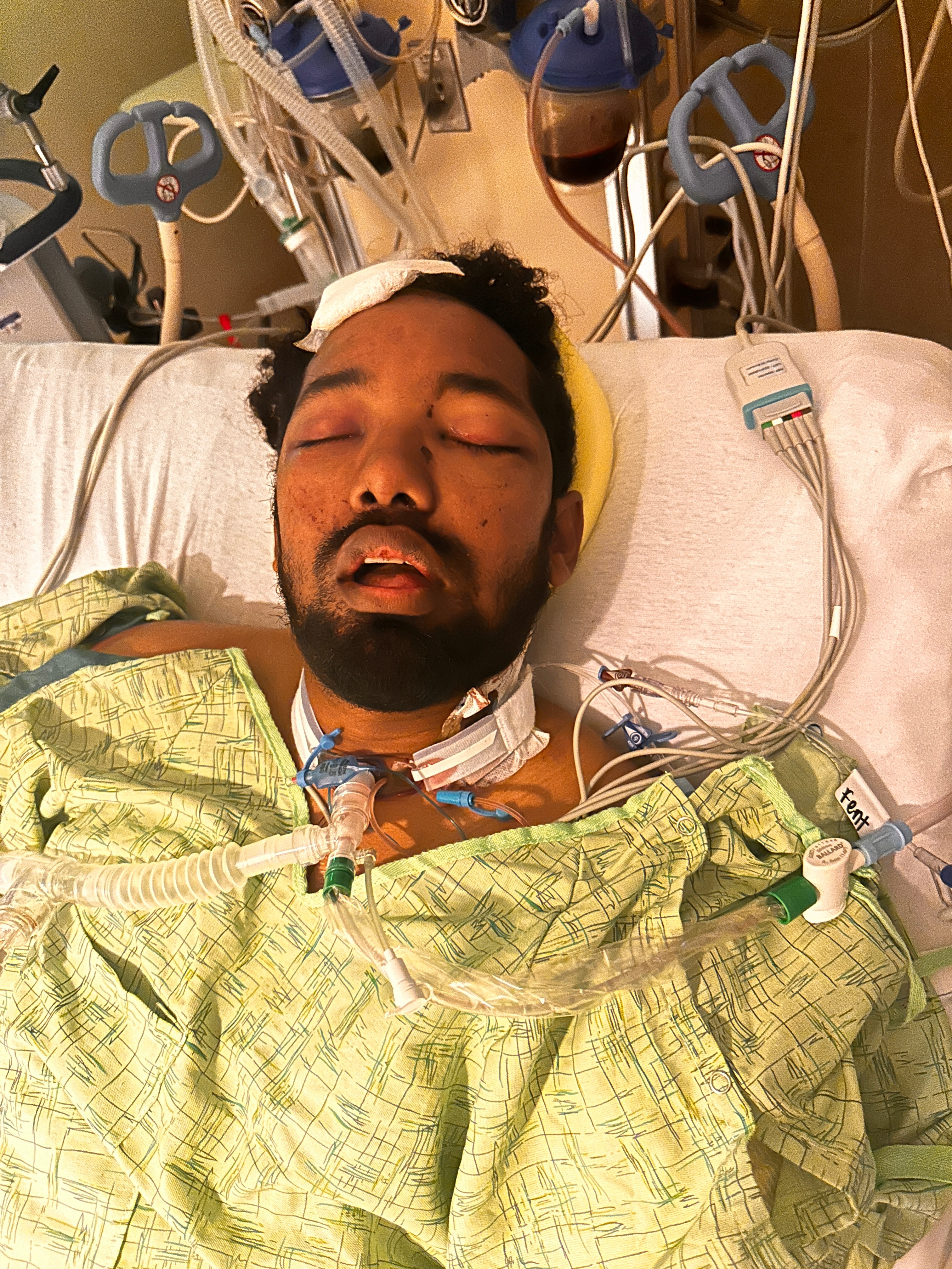 Jose Andres sustained multiple fractures—both arms, left hip/pelvis, right ankle—and severe facial injuries, along with a head injury. Since that day, he has undergone five major surgeries, bronchoscopies, and a tracheostomy to help him heal.