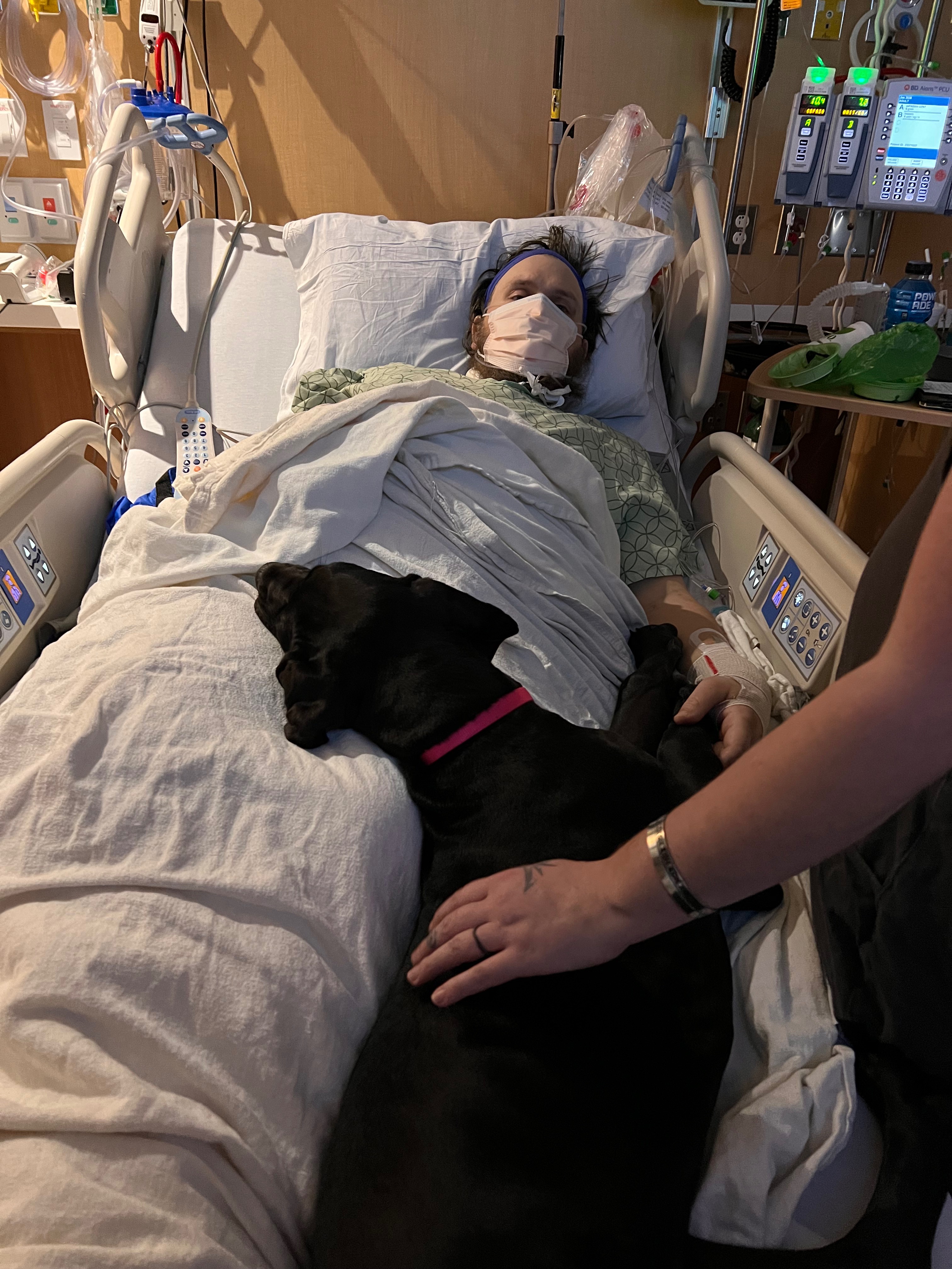 As such stories go, there always has to be a challenge. In Nigel’s case, he is huge so his challenges have been as well. Five weeks ago, he was laid off of his construction job due to lack of work. A week and a half ago, he came down with a sudden fever, body aches, and joint pain. Thinking it was just the flu, he tried to ride it out. Three days later, he was admitted to the University of Utah Hospital with septic arthritis. This came secondary to a staph infection that started as a little sore on his forehead. Since then, he has had both wrists, both ankles, and a knee cleaned out. He has had injections in both eyes and a bit of brain surgery, with some micro strokes due to the bacteria there as well. Currently, he is awaiting open-heart surgery to replace a heart valve that is covered in bacterial vegetation. Every time his heart valve opens and closes, the doctors are afraid that the bacteria will get flipped off of the valve and travel to his brain.