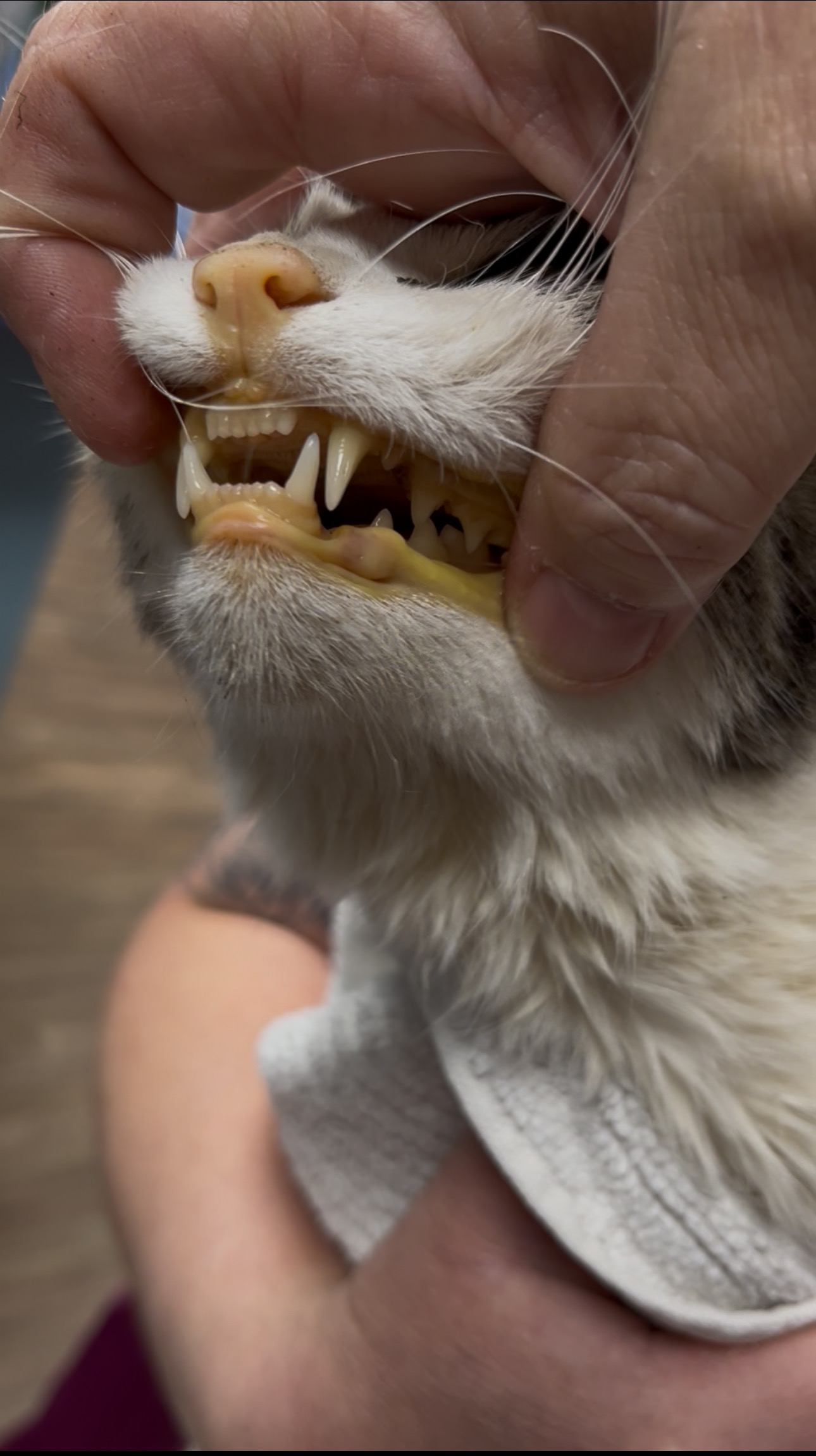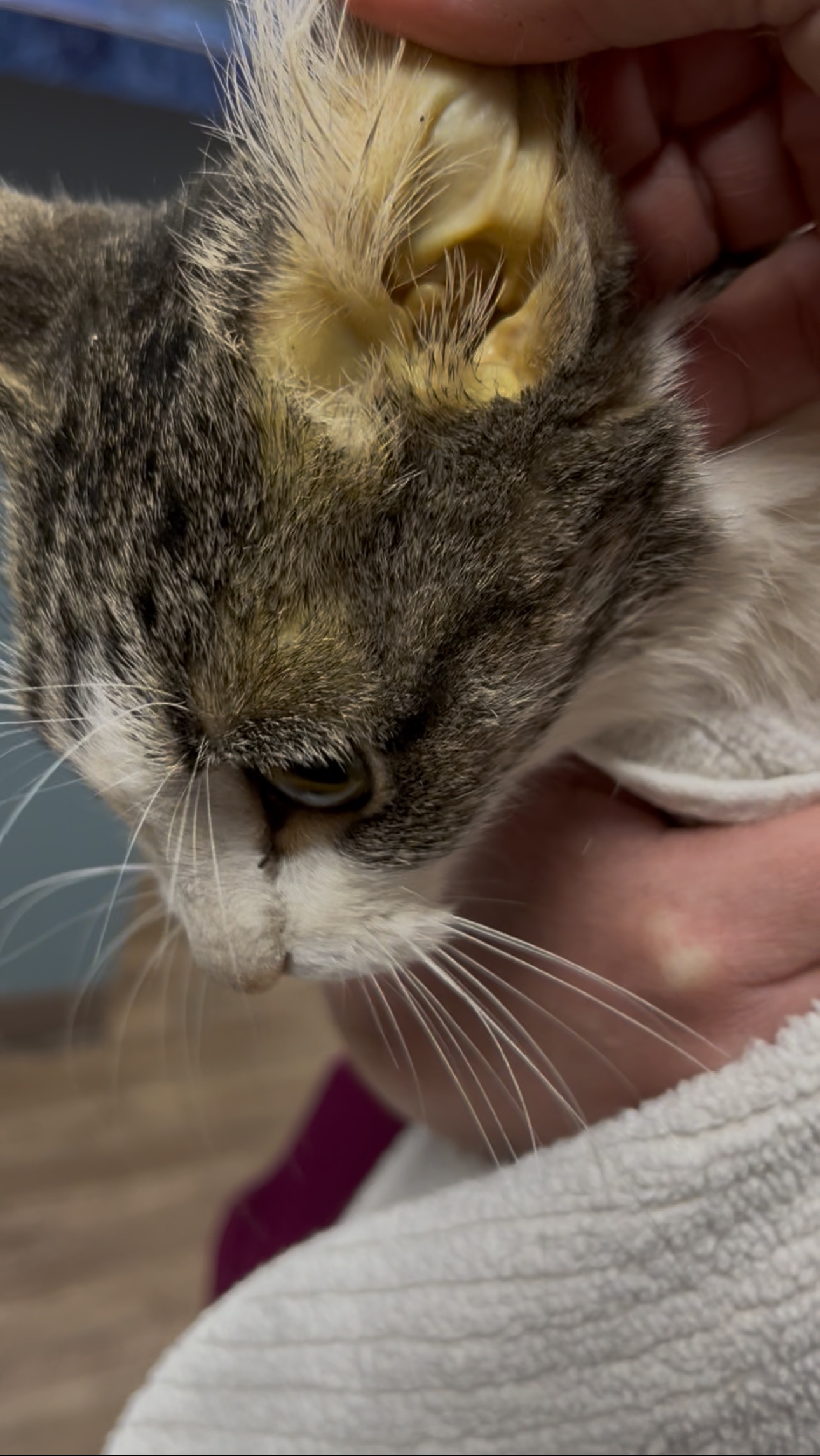 We knew at that moment that she was in the stages of liver failure due to starvation. The inside of her ears were yellow. Her gums were yellow. The worst case of jaundice they had ever seen.