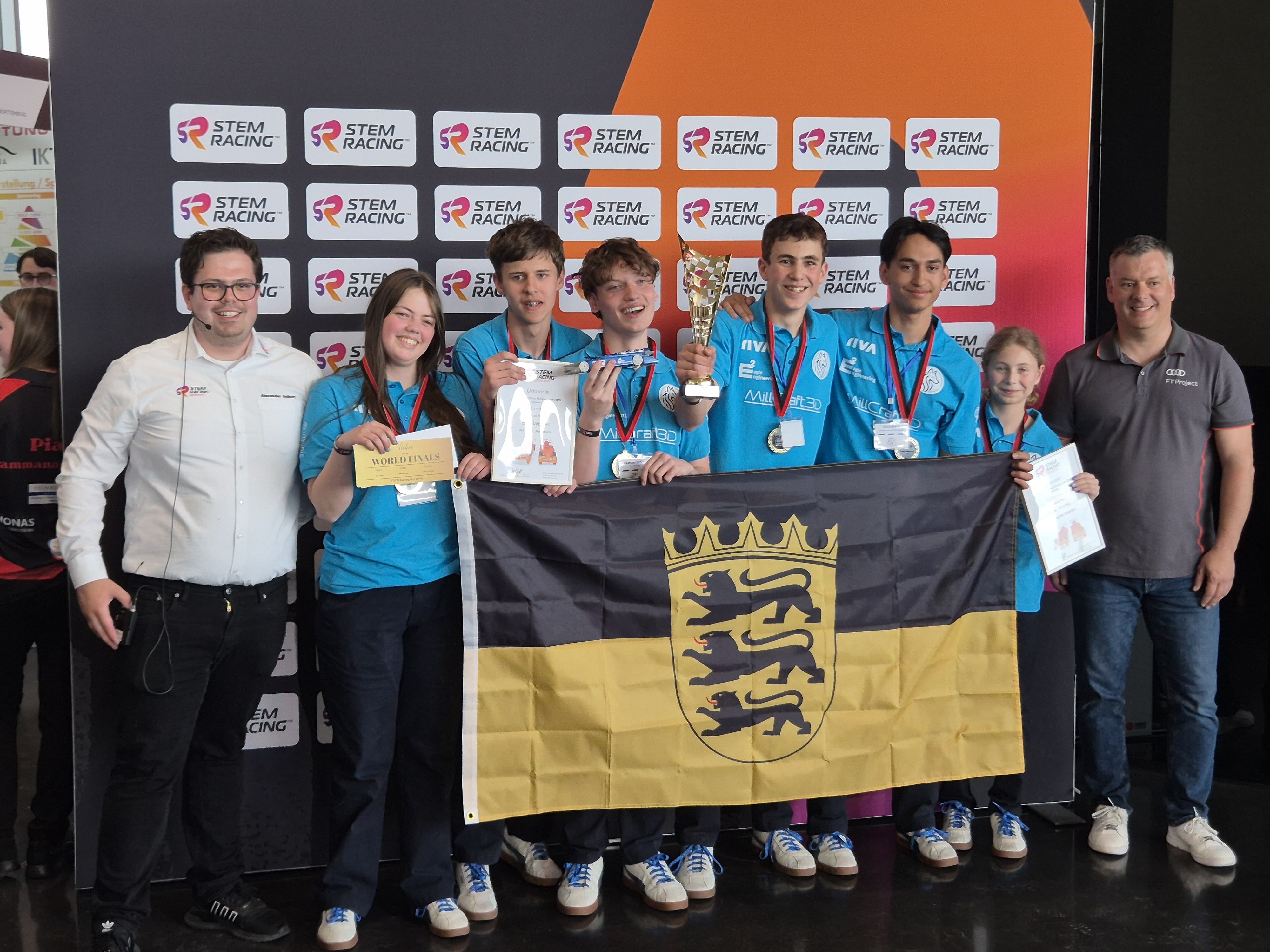Wir sind das „STEM Racing“-Team „Blue Wolves“, bestehend aus 6 Schülern von Klasse 6-12 des Gymnasiums in der Taus Backnang. Beim Schülerwettbewerb STEM Racing konnten wir den diesjährigen Deutschen Meistertitel in der Senior-Kategorie gewinnen und uns damit für die World Finals in Singapur Ende September 2025 qualifizieren. Damit konnten wir unsere Erfolge aus der Junior-Kategorie fortsetzen, in der wir als erstes Team überhaupt zweimal hintereinander den deutschen Meistertitel gewinnen konnten.