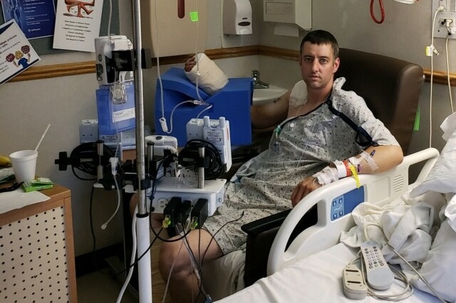 On July 7th Stephen Dalton was critically injured in an accident, which almost severed his dominant hand. He was life-flighted to Sayre Hospital, stabilized, and flown to Philadelphia, where he has faced six surgeries in the last month. He does not have health insurance.
