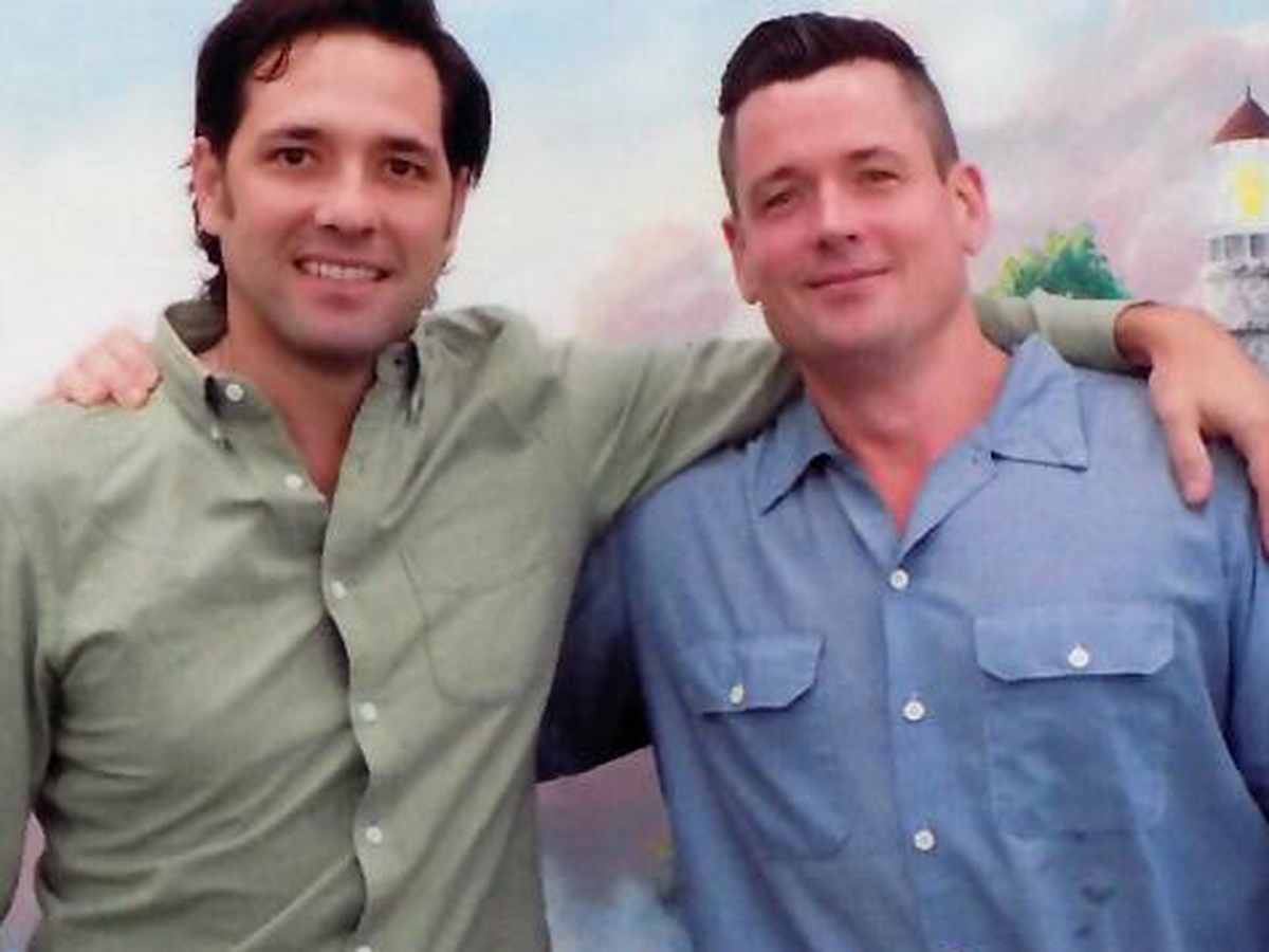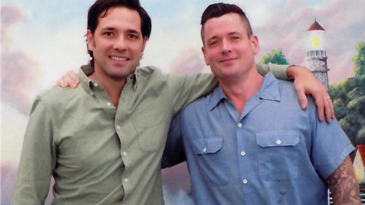 Steven and his partner Michael at a prison visit.