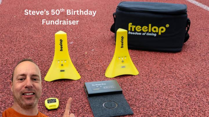 I’m Steve and a keen sprinter. I am also 50 on June 28th and decided to do something memorable for this event. Rather than cards, presents and experiences, the best thing to celebrate this event would be something that many people could contribute to