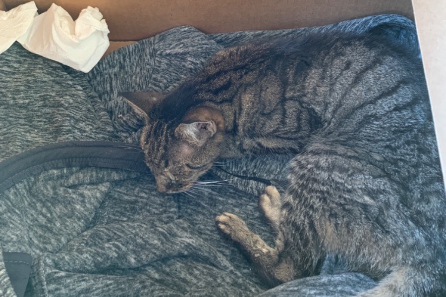 We jumped in and got kitty out, but this cat will need a ton of medical help. I’m rushing this baby to an ER to see what can be done to help save this precious life.