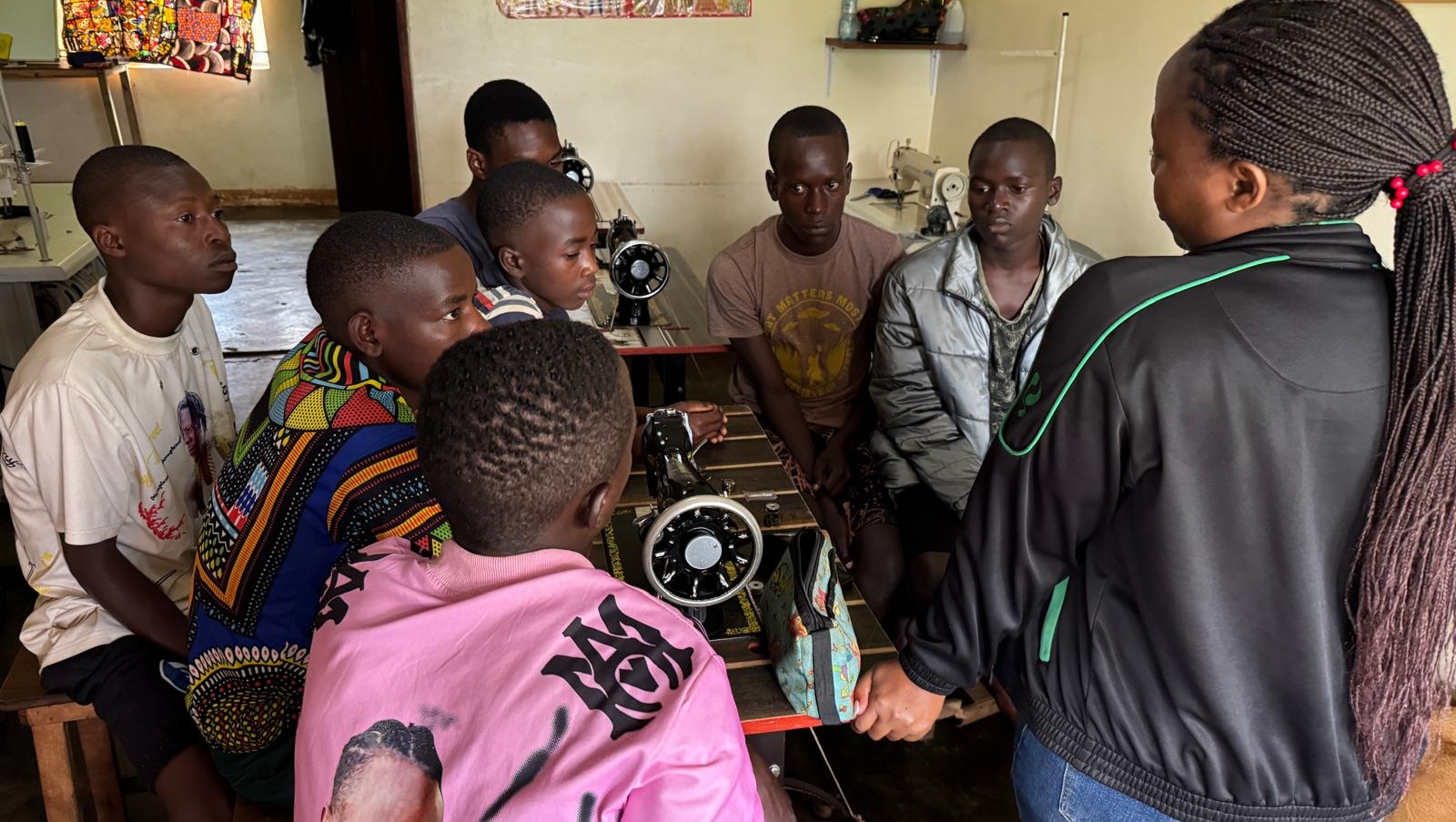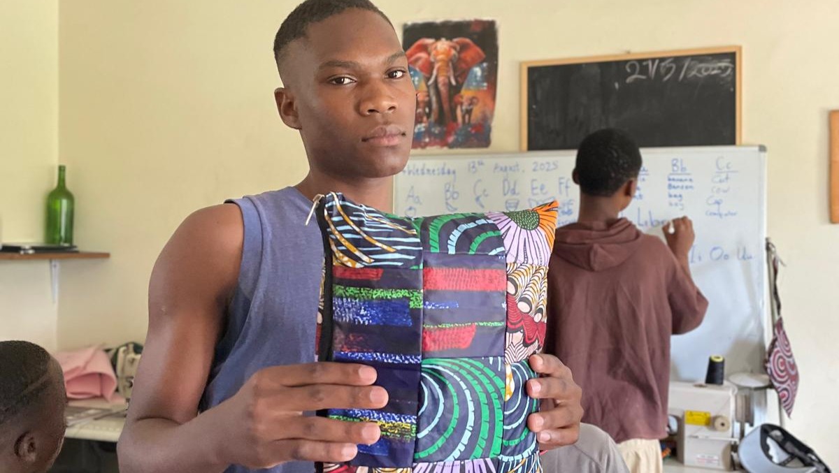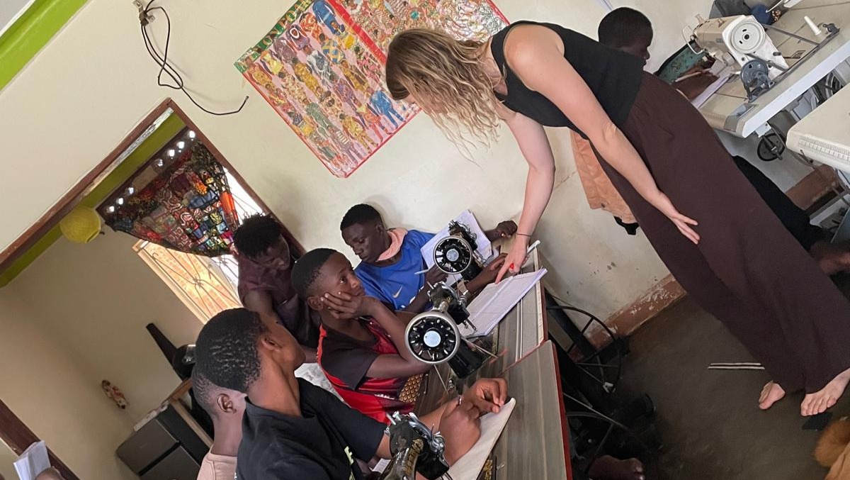 I’m Meggy, an Australian teacher and volunteer with Afrisole Creations. Each day I sit side by side with the boys, teaching them basic English, guiding social and emotional learning, and listening as they share their stories. In between their tailoring lessons, we laugh, learn, and talk about their hopes for the future.