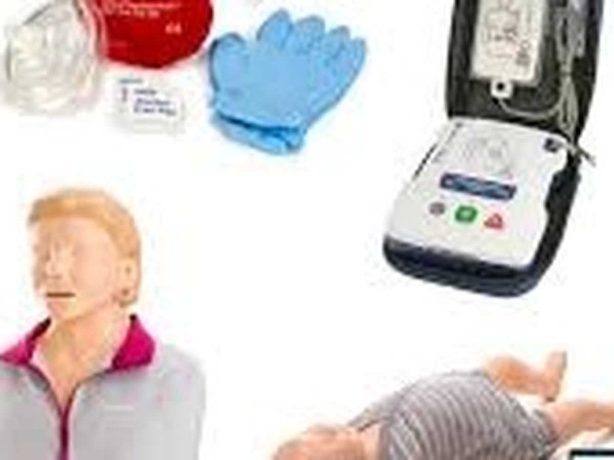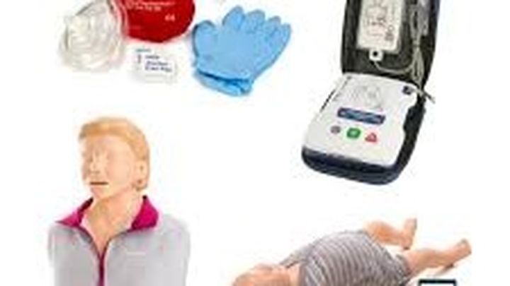AED trainer, first aid kit with training supplies,