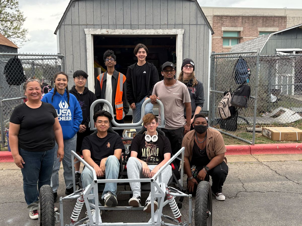 The picture above is from March 2025, when most of the frame & chassis was completed (and doesn't included the whole team - we're working on new pic!!). They have since finished the steering, power assembly, brakes, controls for brakes & accelerator and safety lighting (headlights, brakes, turn signals & horn). It is an amazing build process that these students get to work through, design & experience AND use/race!! In testing, the car has gotten up to 40Mph and we are starting to shift to endurance tests to see how long our solar powered battery packs can last before re-charging.