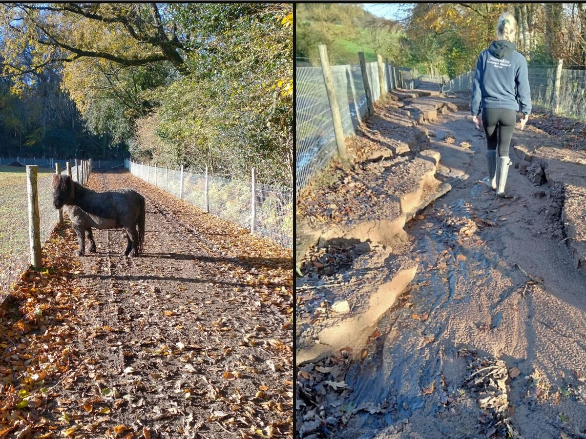 Please help us! We had just finished installing our new track system around our fields when Storm Bert hit and wiped the whole thing away! Completely unexpected and unpredicable catastrophe and a massive blow to our charity when we'd just finished the fundraising appeal to get the track installed. We now desperately need funds to repair the damage and hopefully prevent this happening again, meaning much more structural work is required with a new strategy to include more drainage, limestone, scalpings etc to reconstruct the track and solidify the foundations to prevent future storm damage. The storm also caused flooding across the fields and many of our grazing areas are now unusable due to the ponies being knee deep in mud, so we are also pushing to buy more mud control mats which are an absolute life saver in these awful winter conditions we're experiencing. Our long term goal is to build a second barn to provide more shelter and hard standing for the ponies but currently we are barely keeping our heads above water - literally!