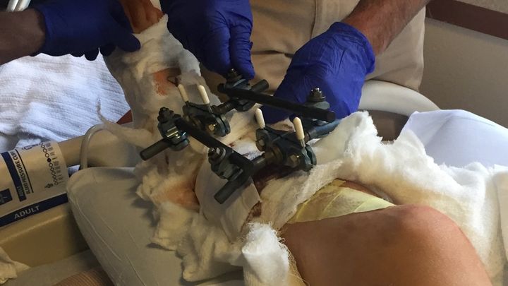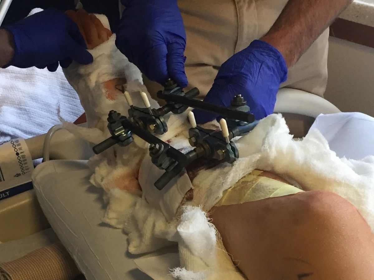 In January of this year our son Jerret was hit by a car while trying to cross over Highway 50 to get to the store.  It was on a day that had a lot of traffic leaving Tahoe on a Sunday.  Jerret was able to cross the eastbound lane but got caught in the turn lane by the never-ending line of traffic in the westbound lane.  When the eastbound traffic came up the lead car, seeing Jerret, had slowed down and drifted away from him, but the second car must not have seen what was happening and decided to pass the car in the turn lane where Jerret was standing.  The incident could have been extremely worse, but fortunately Jerret got away with only a severley broken leg and ankle.  Meanwhile, the westbound lane never stopped, even when Squirrel and my other son were trying to pick Jerret up from laying in the middle of the road.