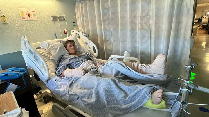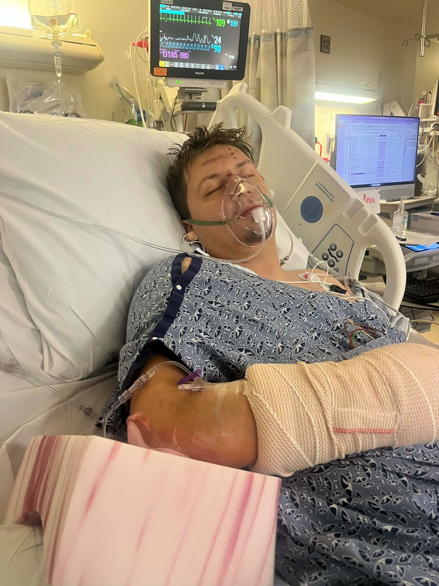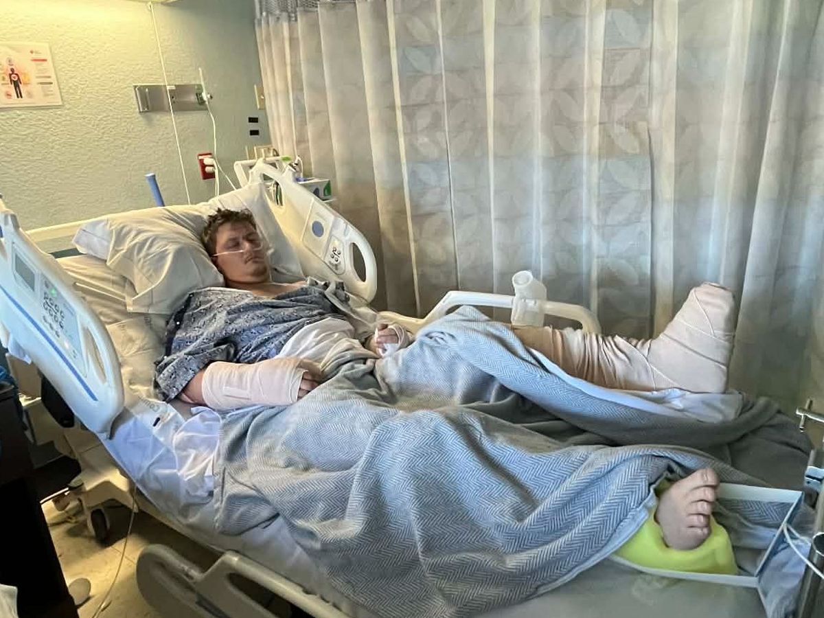 My grandson DJ was struck by a pickup while riding his motorcycle. He sustained multiple fractures in both arms, both legs (the worst being one open fracture and a femur fracture), hips, and back. He also sustained other non-threatening injuries.