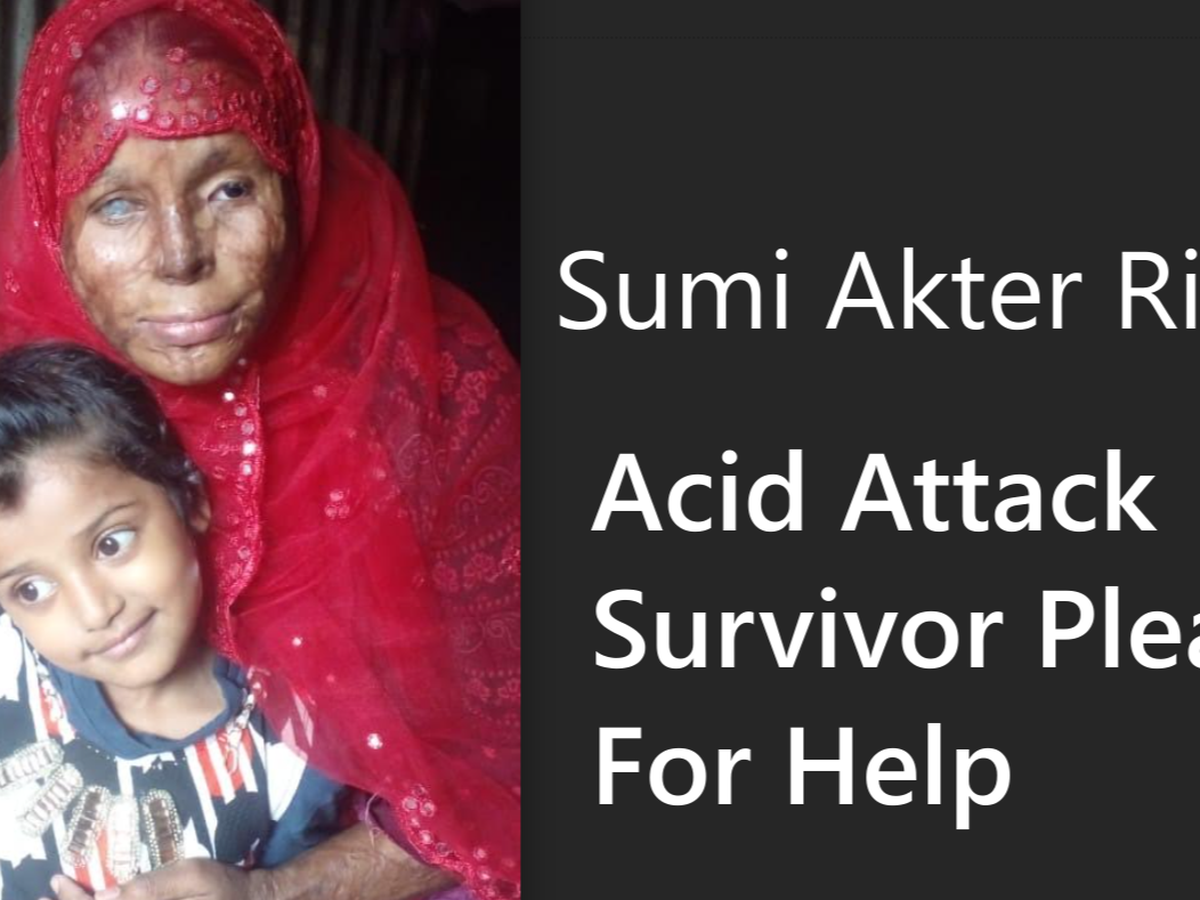 Nearly ten years ago, Sumi's life changed after she rejected a marriage proposal. Her spurned suitor organised a acid attack, with life changing consequences for her. She suffered severe burns, affecting her face, eyes, and upper body. Initially after the attack Sumi featured in a number of documentaries and was able to access funds for medical treatments, however in recent years she has found her self in great financial difficulties. This was so great that she was forced to accept a marriage proposal from her perpetrator in order to be able to survive. Within a few years of the marriage, her perpetrator left her, and it became clear that he had pursued a marriage to her to lighten his prison sentence. He left her a single parent to their daughter, and does not provide any financial help. Sumi struggles with daily costs of food, housing, medicine, and clothing for herself and her child, and relies solely on charity to get by.