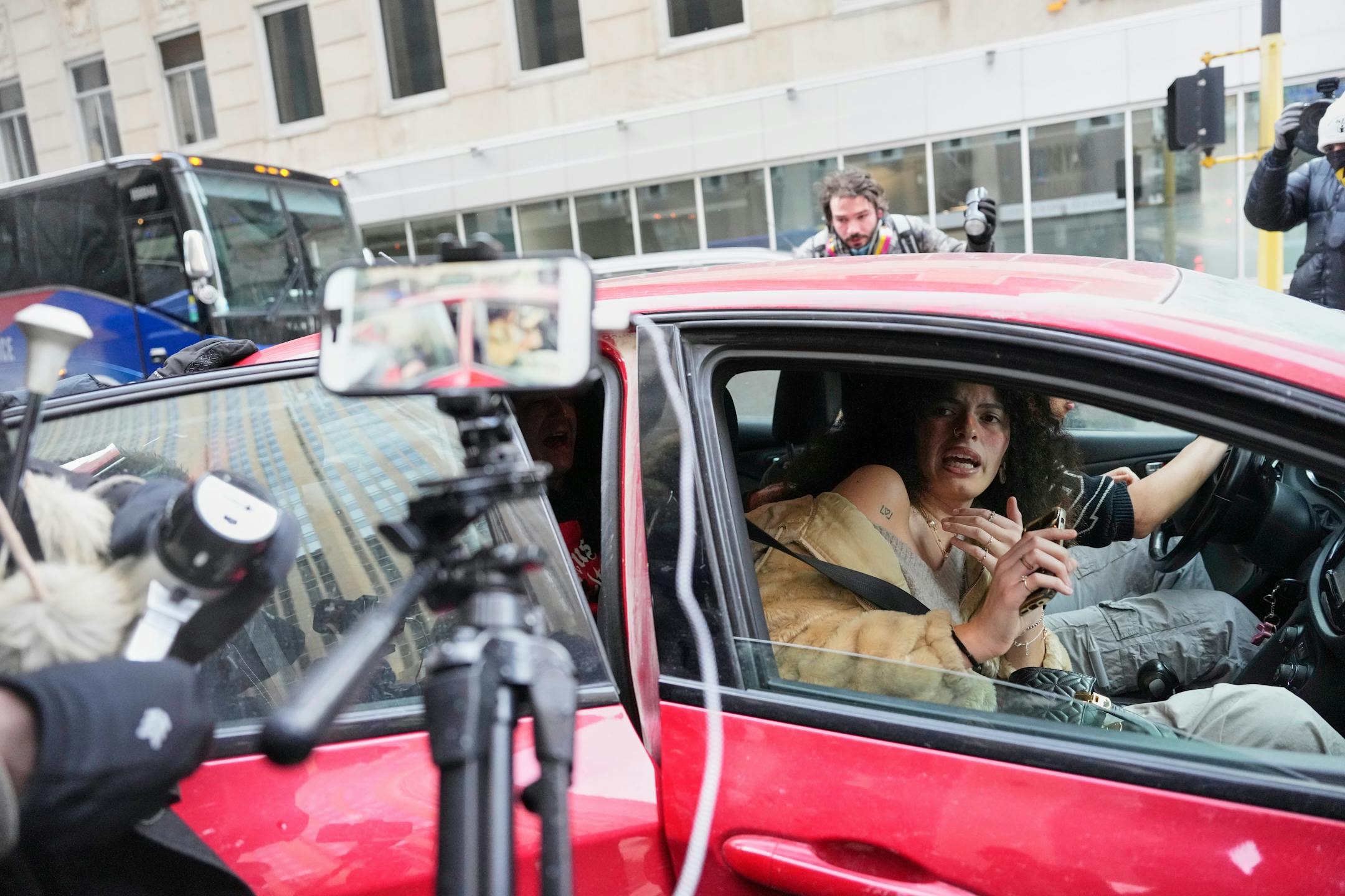 While in Minneapolis, they believed they were helping someone in need and allowed a man Jake Lang, to get into their car. Afterwards a group of protesters surrounded Leah’s car and attempted to pull the man out, causing damage to the vehicle in the process.