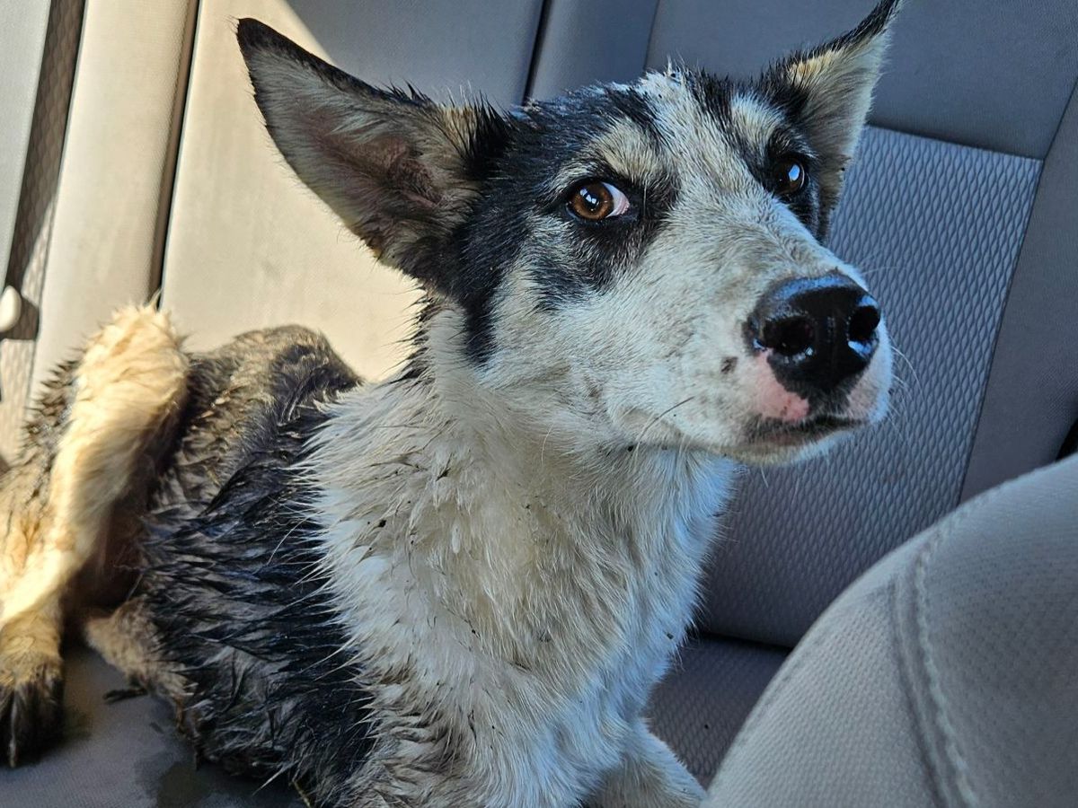 She was most likely hit by a car after being dumped in an area that is sadly a known dumping spot for unwanted dogs. We think she's a husky mixed with either border collie or aussie cattle dog, and the vet estimated her to be about nine months old. No chip, and no evidence of a spay scar. We want to get her vaccinated, chipped, and spayed after she's patched up so that she's ready for a loving forever home. If we can't find an adopter, then she'll have a loving home with us.