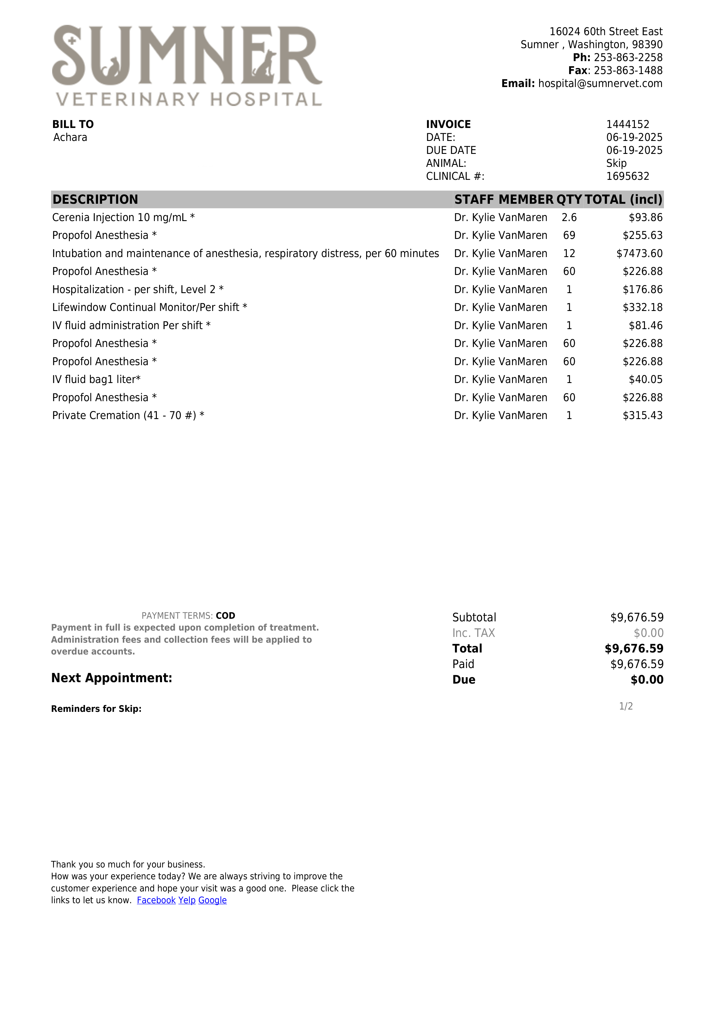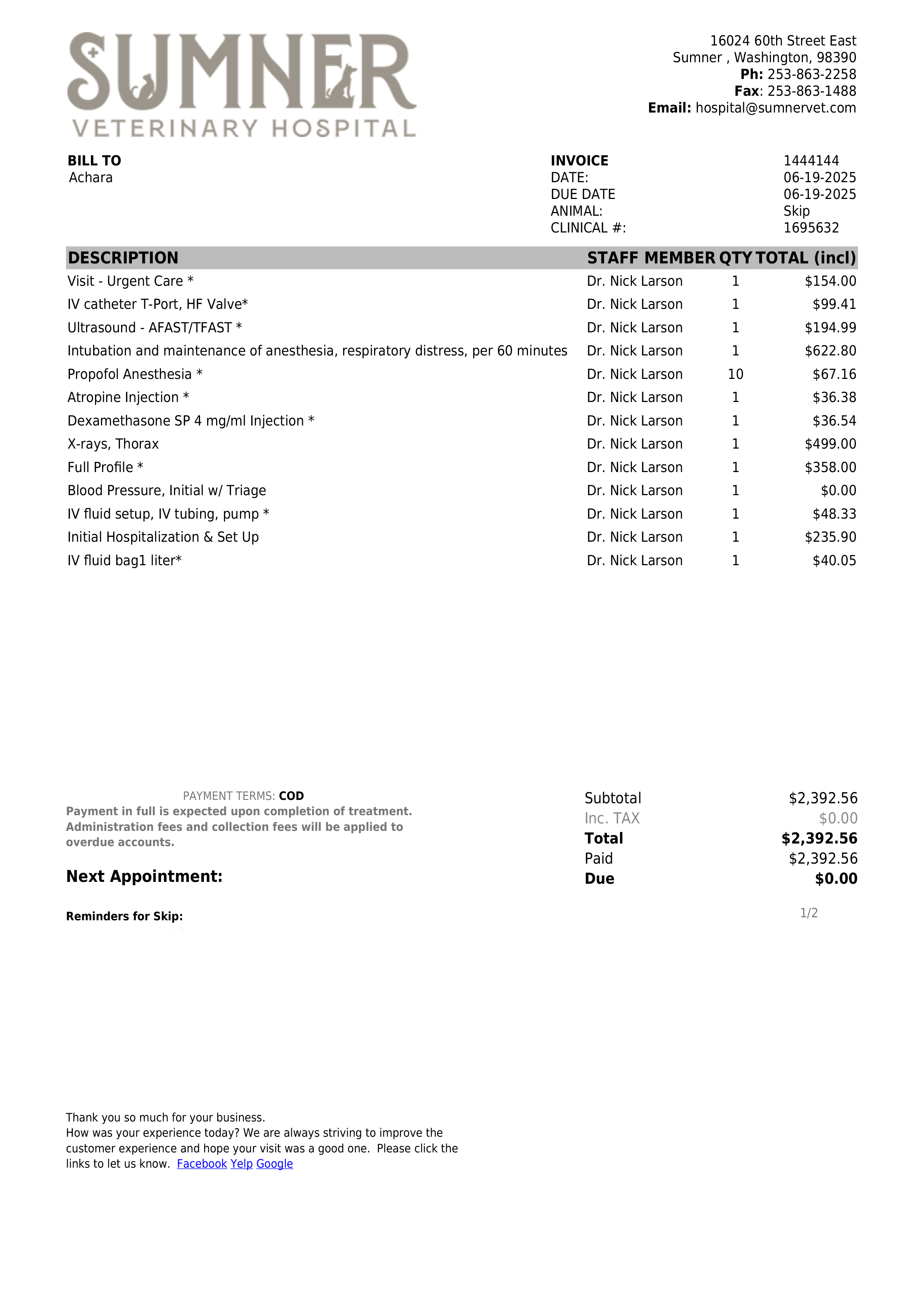 My name is Achara, and I'm reaching out for help to cover the final vet bills for my beloved dog, Skip. Skip is a Yellow Lab who loved to swim and explored the outdoors. On June 19, Skip had difficulty breathing and swelling in his airway which requires urgent care at Sumner Verinary Hospital. Unfortunately, the medical treatments did not achieve the desired outcome. Skip passed away peacefully in the morning of June 20, 2025. The total cost for this emergency intervention which includes intubation, anesthesia, respiratory distress, medication and hospitalization, is $12,069. The medical expenses are significant financial burden for me. Donations are being requested to help with these medical bills. Any donation, no matter how small, would mean the world to us. Your support would provide financial relief and allow us to focus on healing. Thank you in advance.