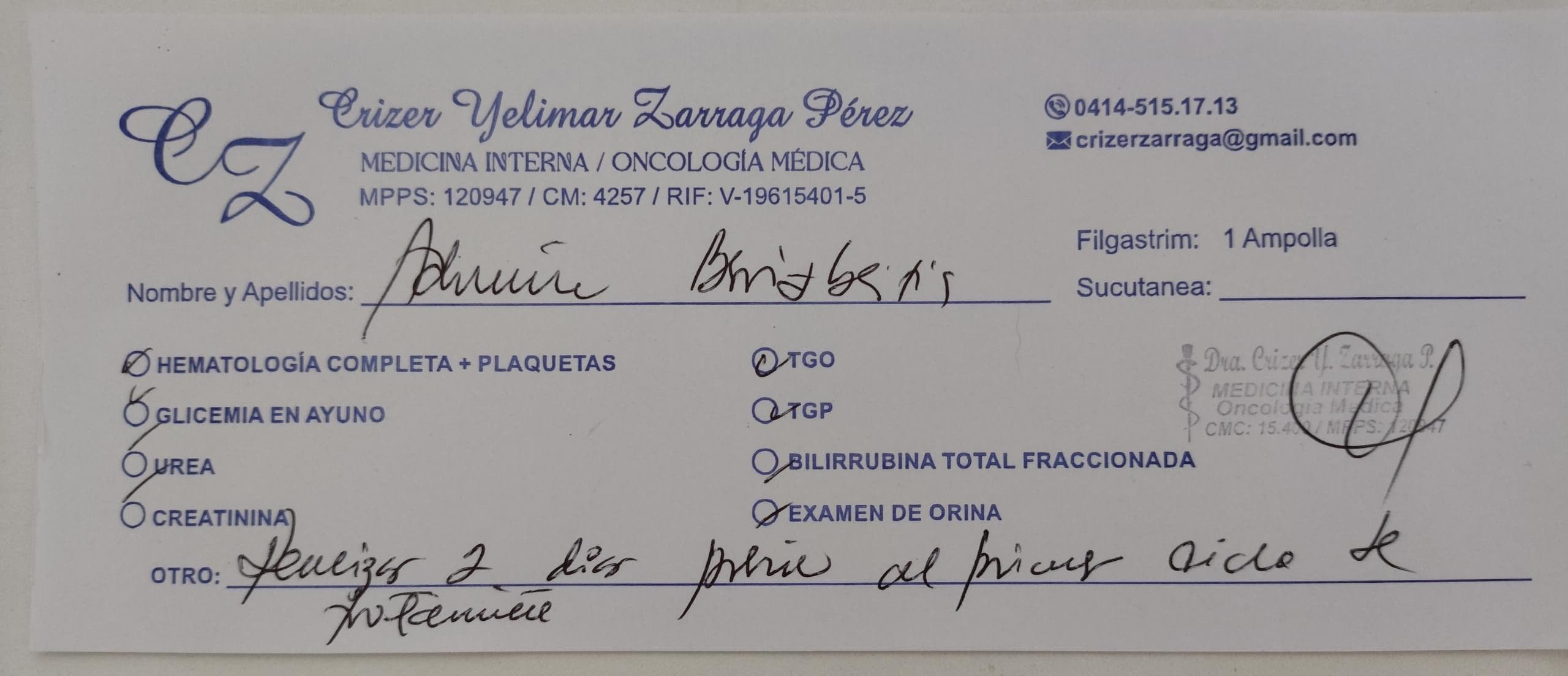 Para continuar su tratamiento, necesita realizarse una serie de estudios médicos costosos, como tomografías, gammagramas óseos, resonancias magnéticas, ecografías y análisis de laboratorio. Además, recibirá quimioterapia y posiblemente radioterapia nuevamente.