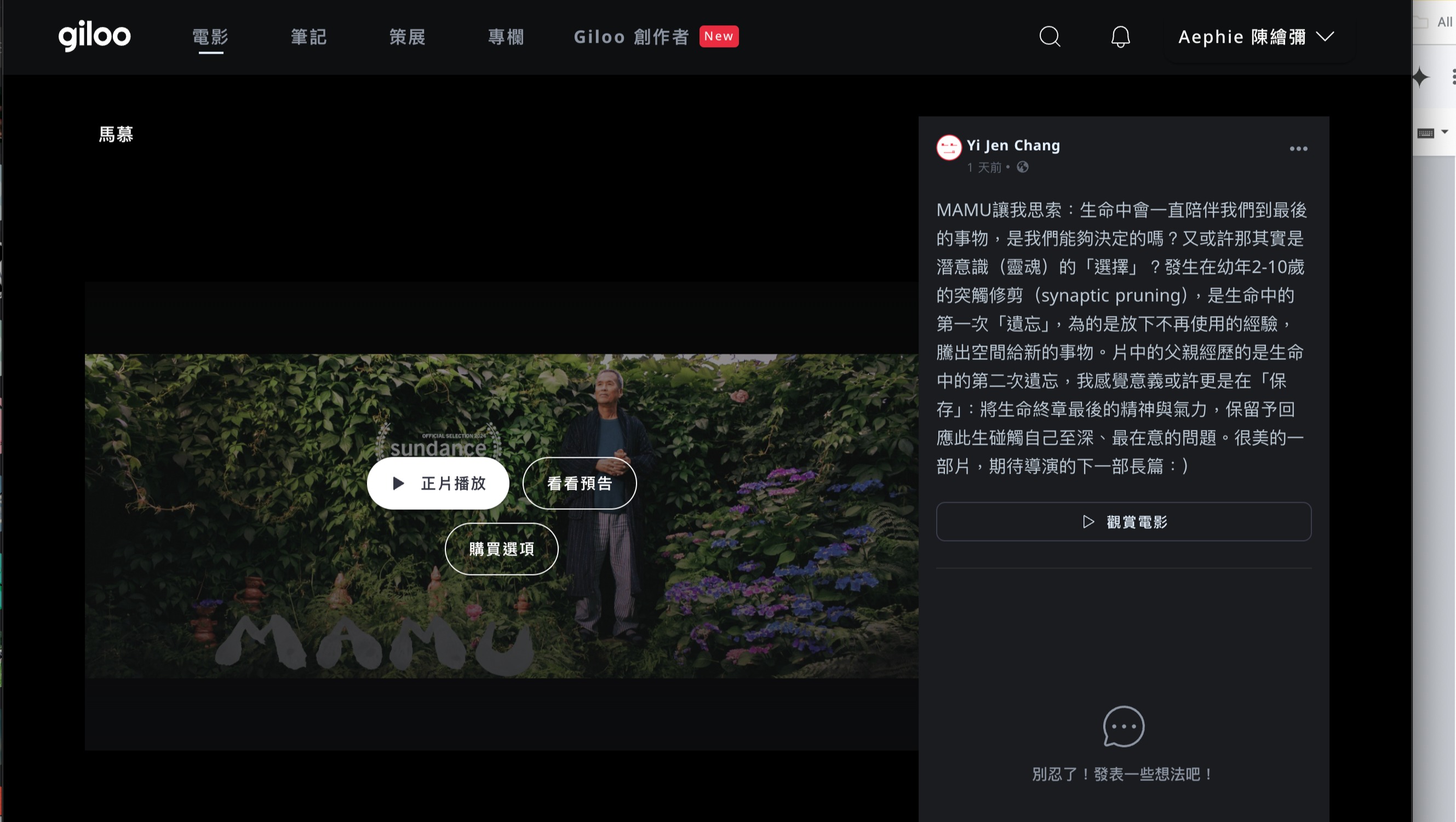 Aephie正在開發首部長片《LUMA》,短片《MAMU》在過去一年內從日舞影展倫敦與亞洲台灣、到夏威夷國際影展、冰島雷克雅維克國際影展、日本沖繩泛太平洋國際影展、到愛爾蘭與即將到波特蘭,獲得大家的支援讓我們籌到了短片製作、後製與宣傳的費用,這次要克服另外一個關卡,最前期的長片開發,希望可以得到大家的應援!